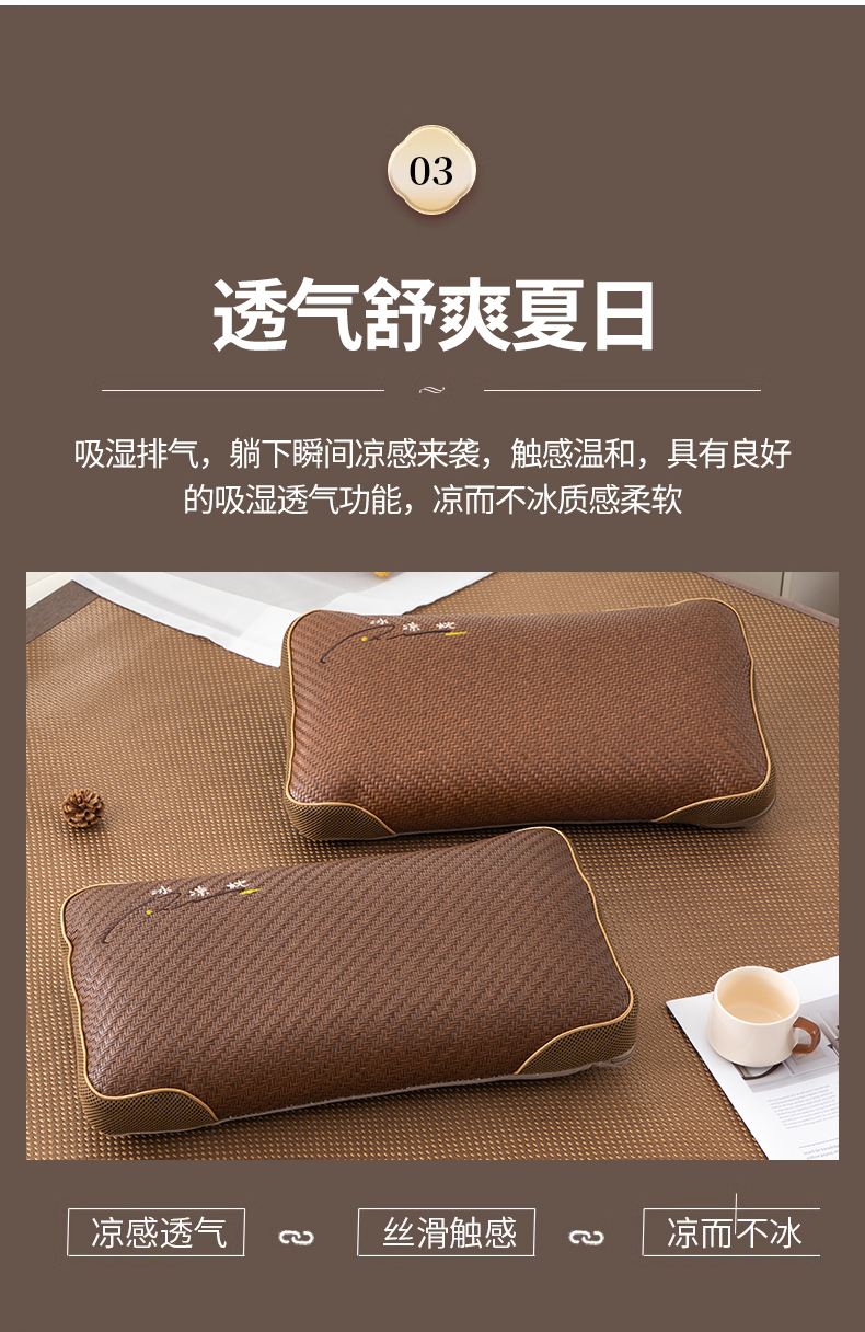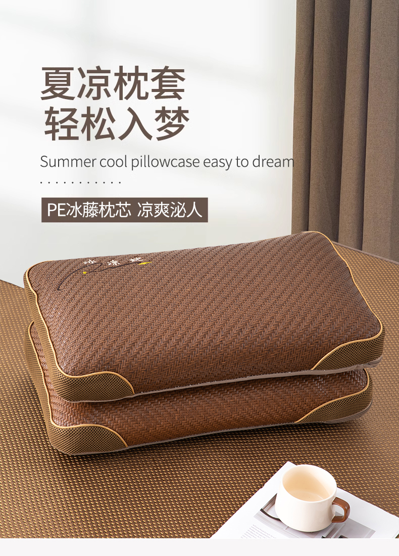 立体PE藤冰凉枕-咖色35*55cm(荞麦枕)