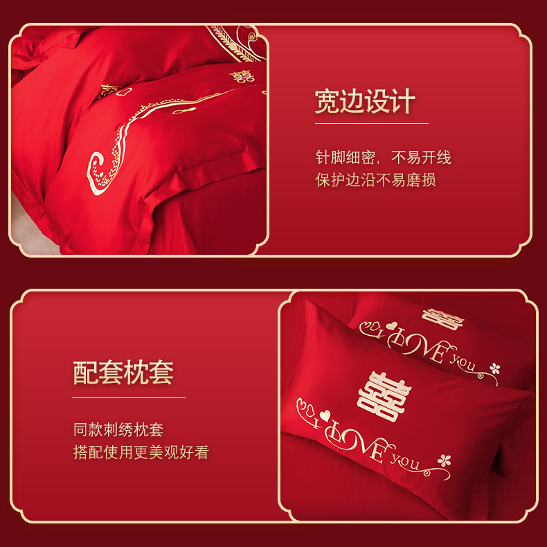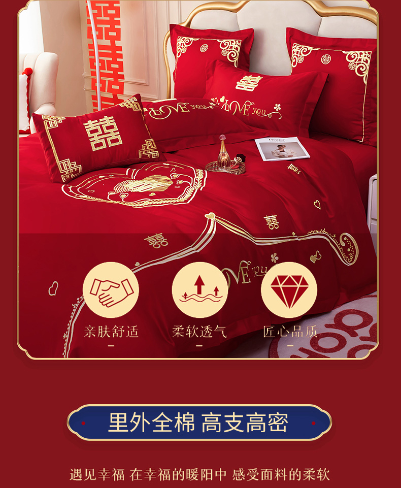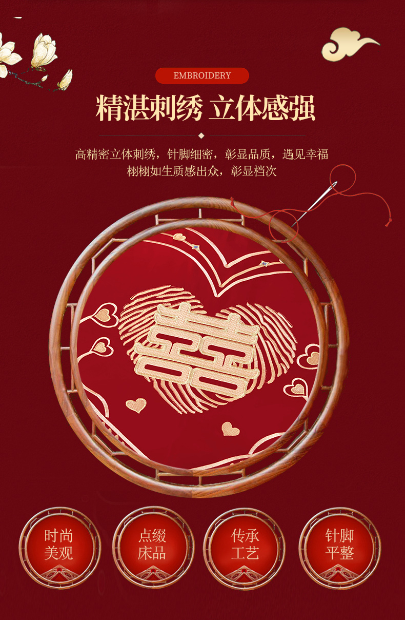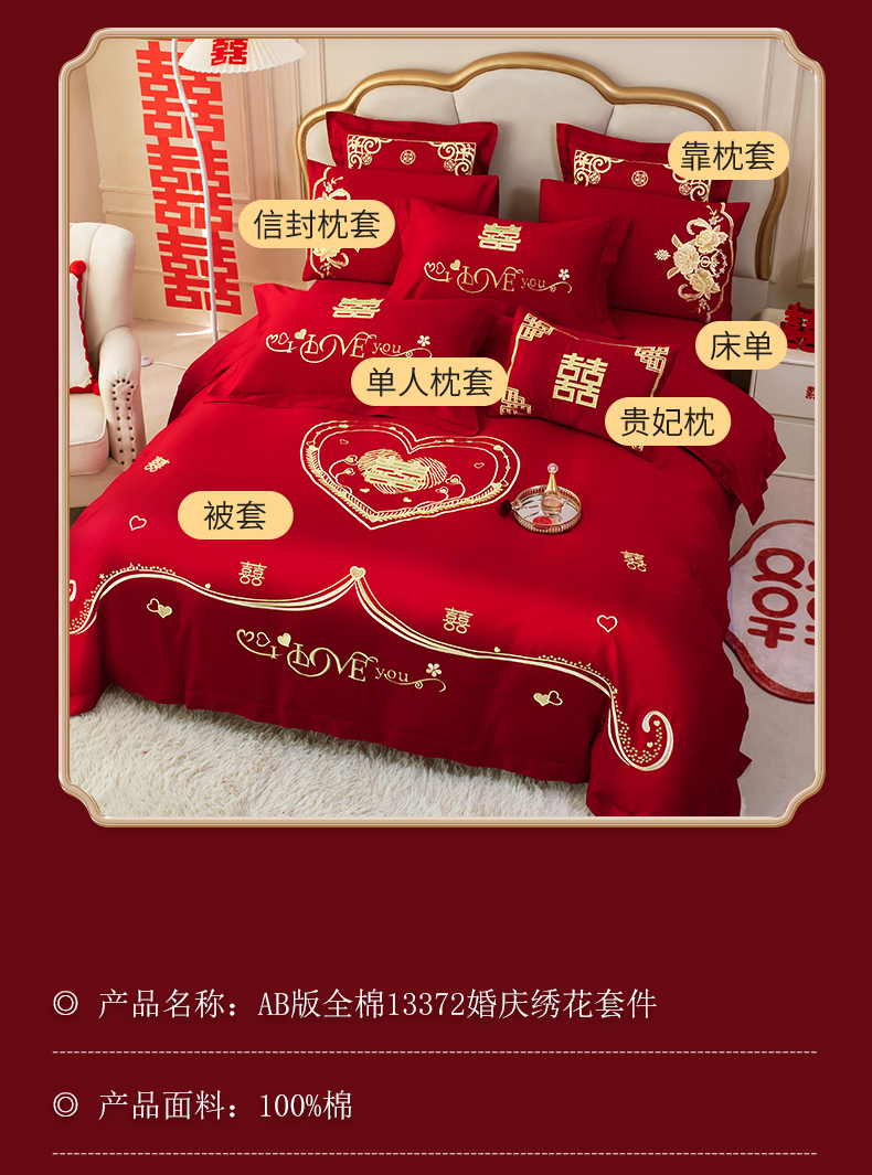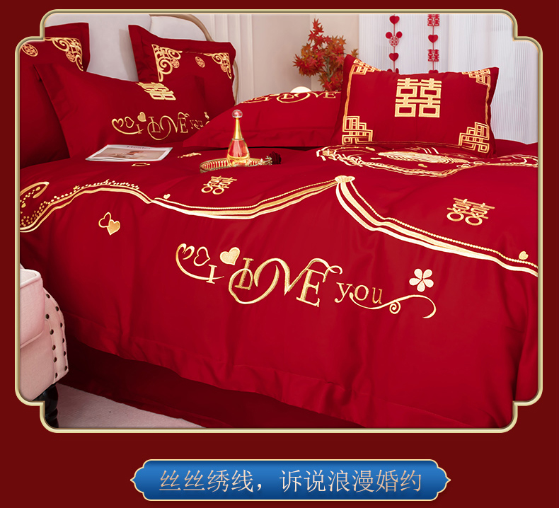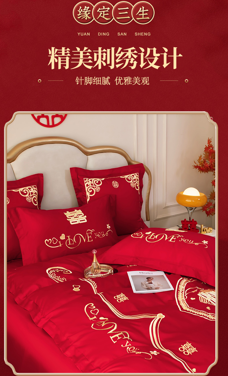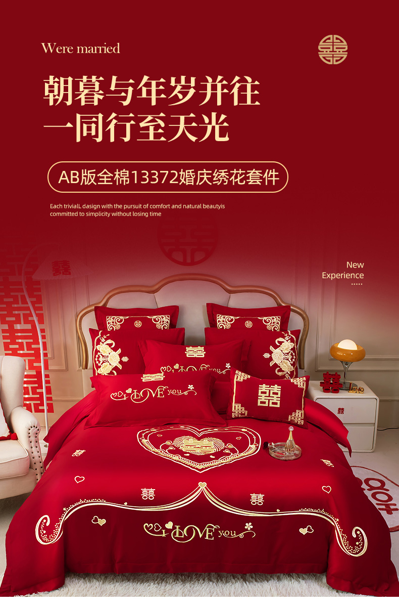 当前位置: 91家纺网 > 商品网购 > 床品套件 > 四件套 > 婚庆四件套 > 千禧家纺 2025新款全棉13372婚庆绣花系列心动