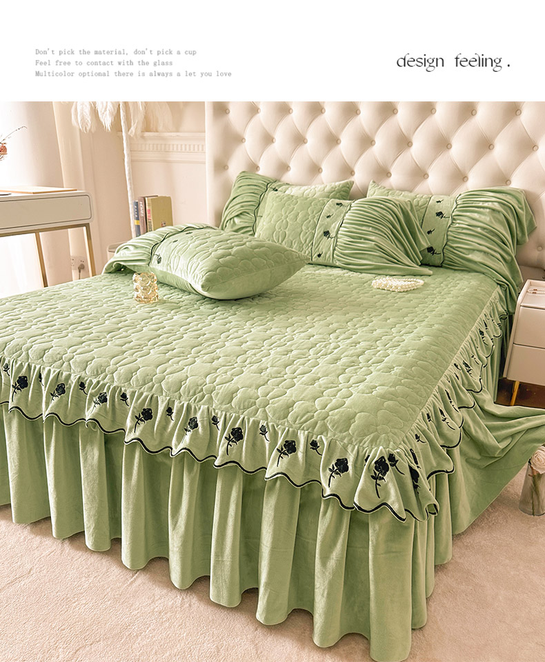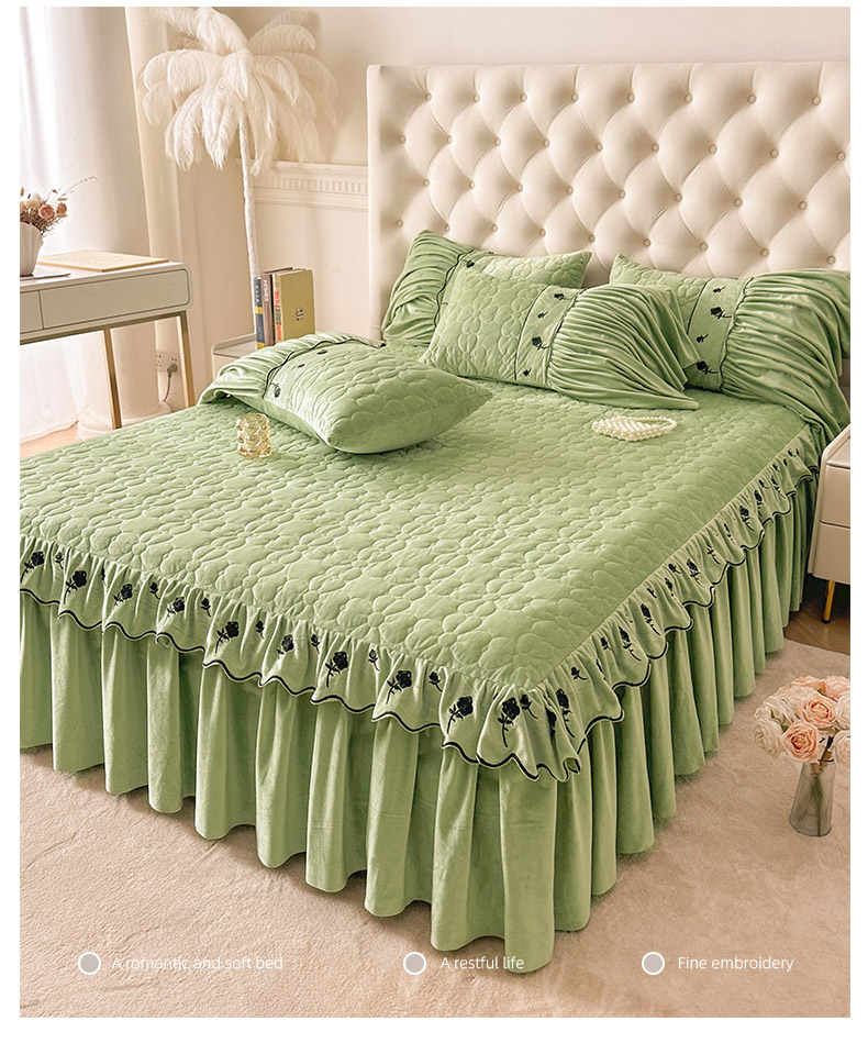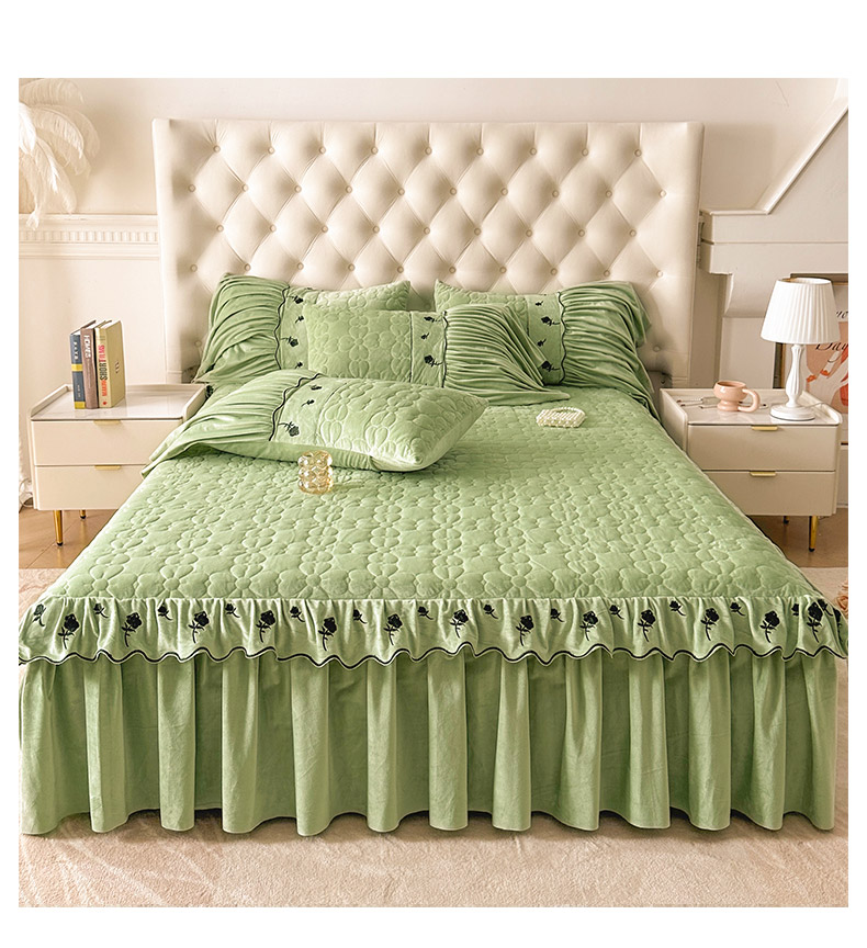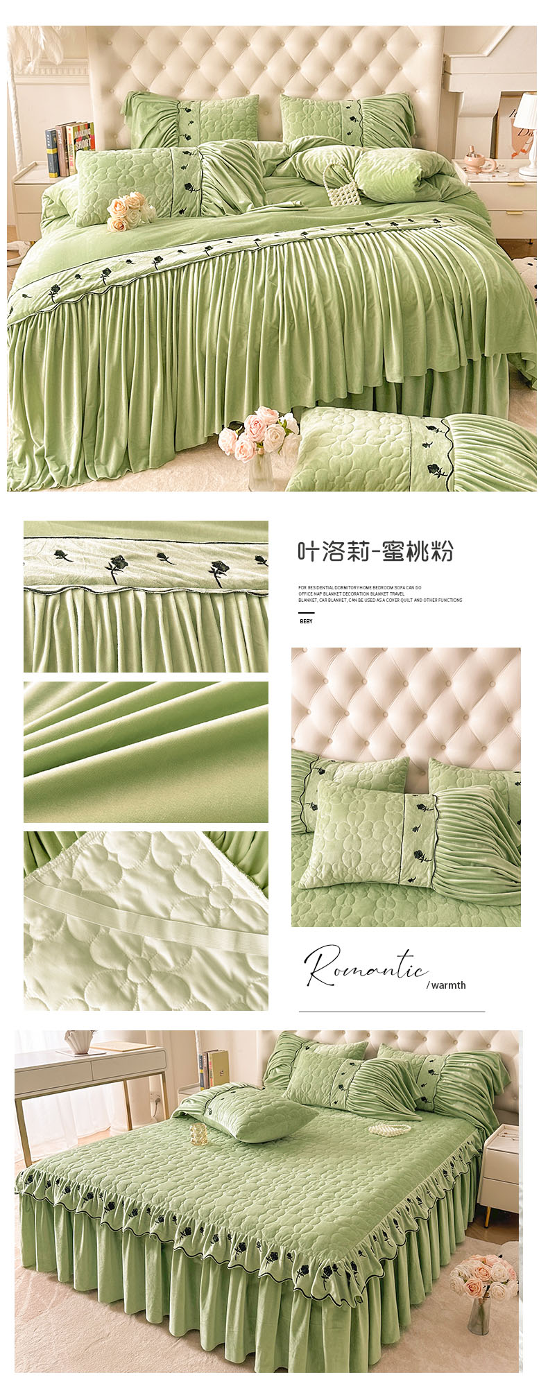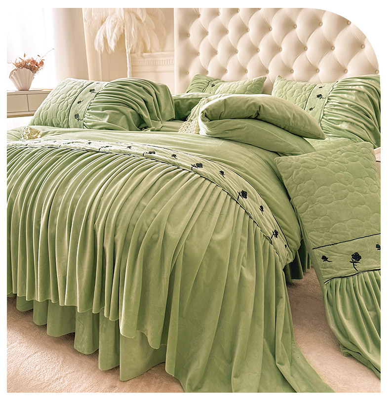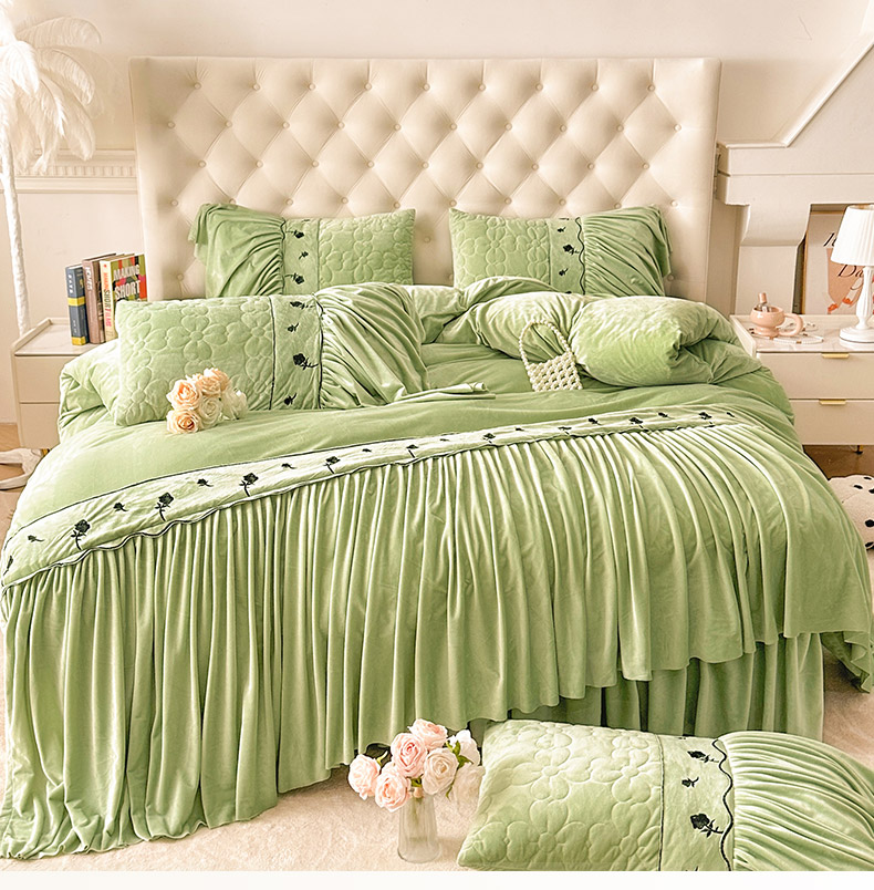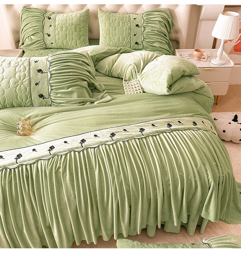 当前位置: 91家纺网 > 商品网购 > 床品套件 > 四件套 > 宝宝绒四件套 > 恋尚 2024新款宝宝绒夹棉床裙绣花四件套--叶洛莉 叶洛莉-薄荷绿