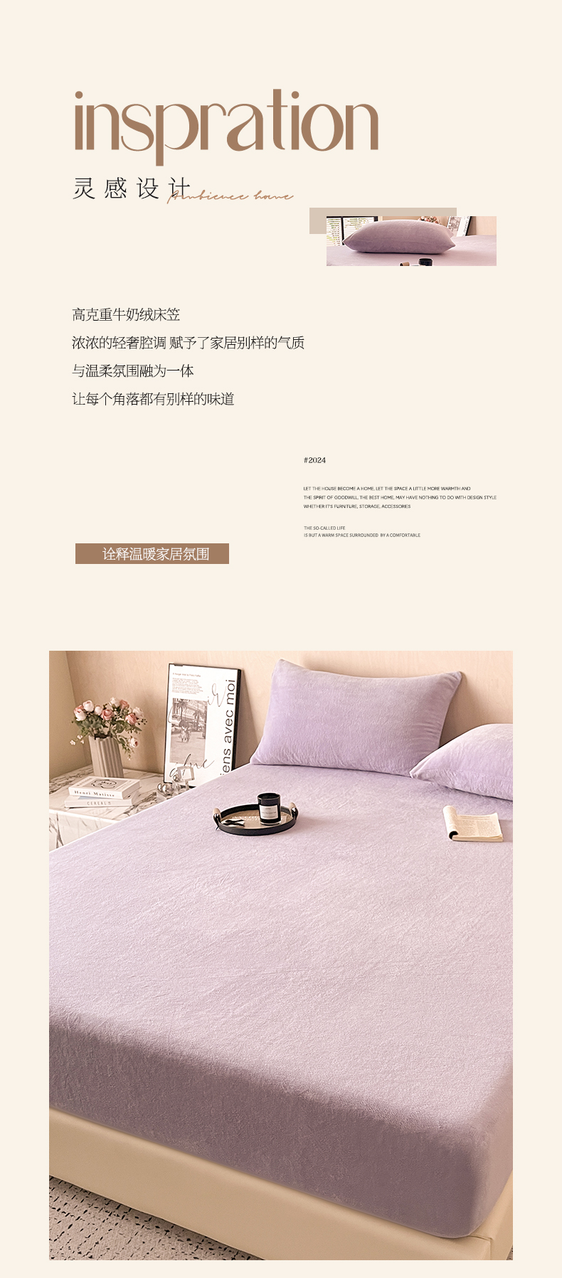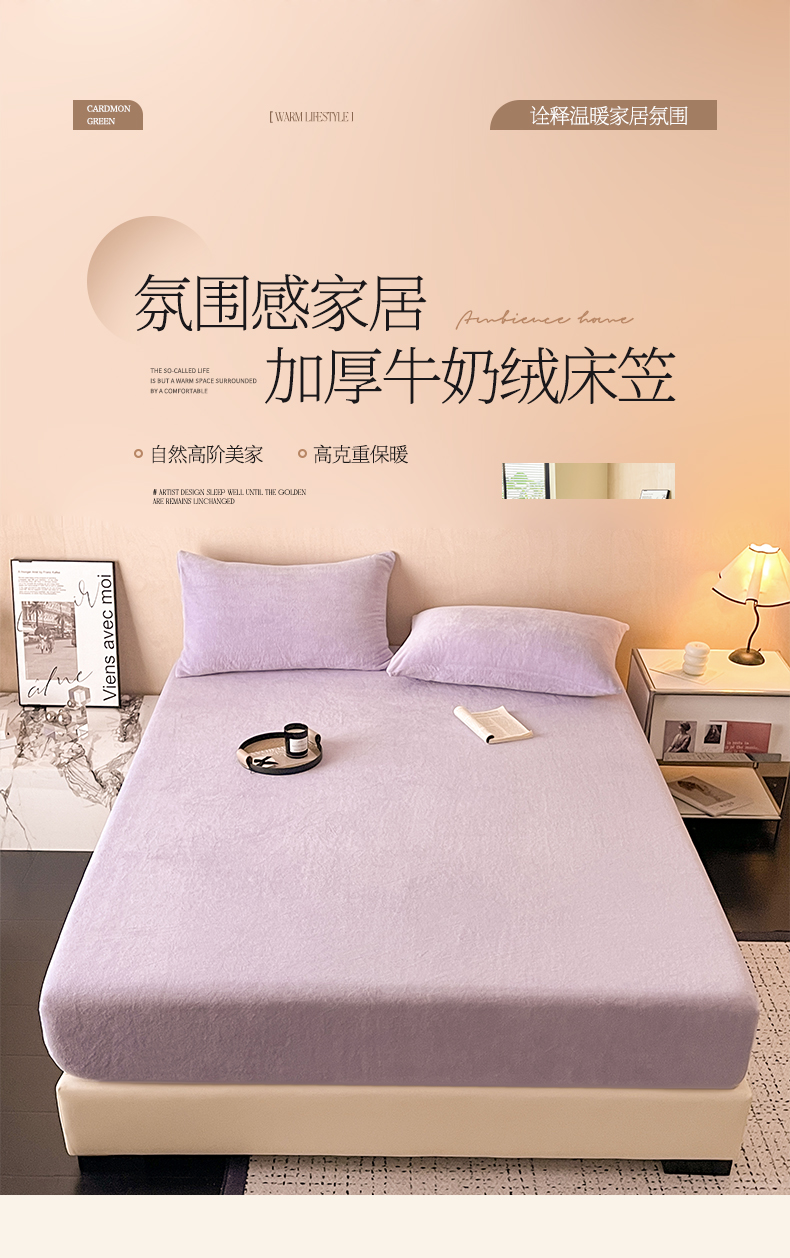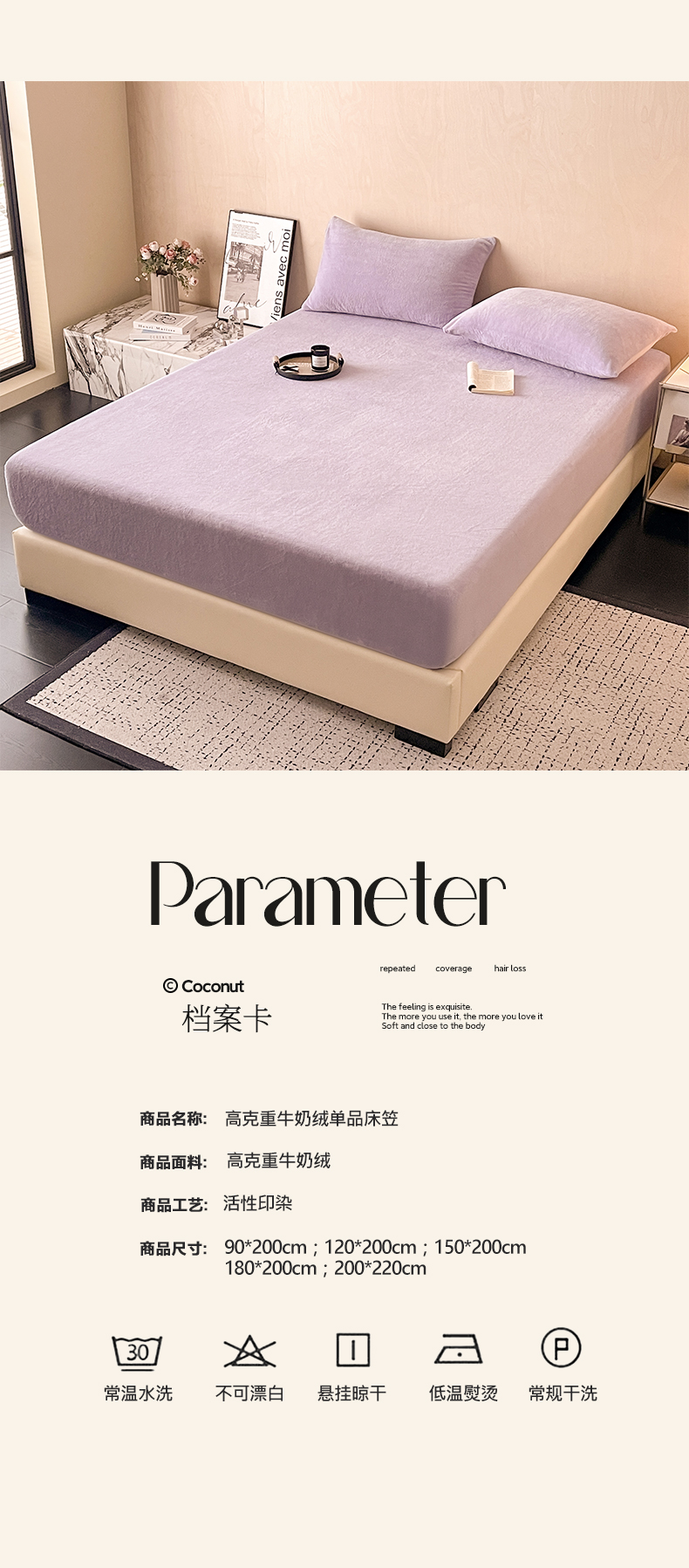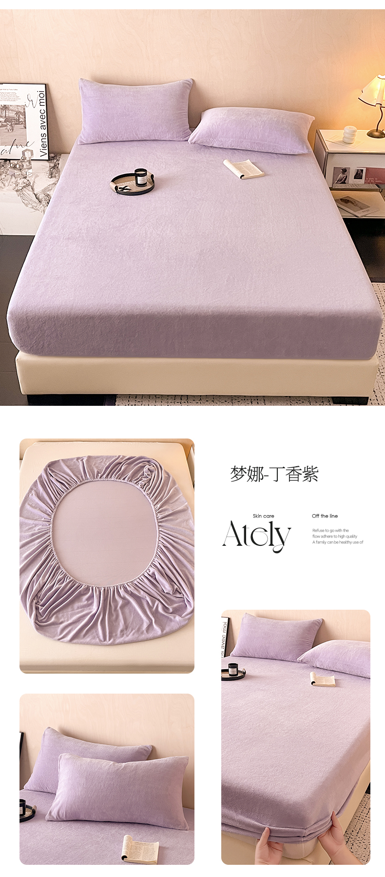 佰亿莱 2024新款高克重加厚牛奶绒单品床笠-梦娜系列 梦娜-丁香紫