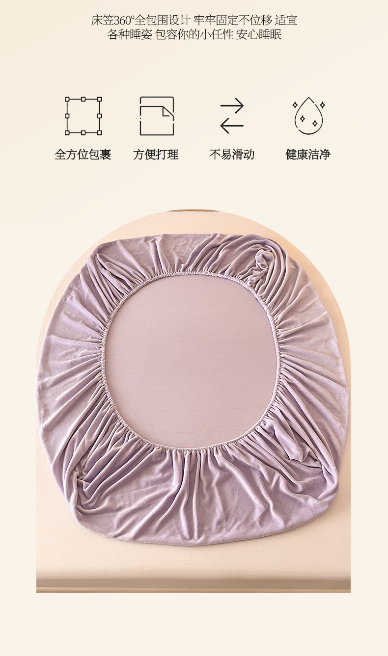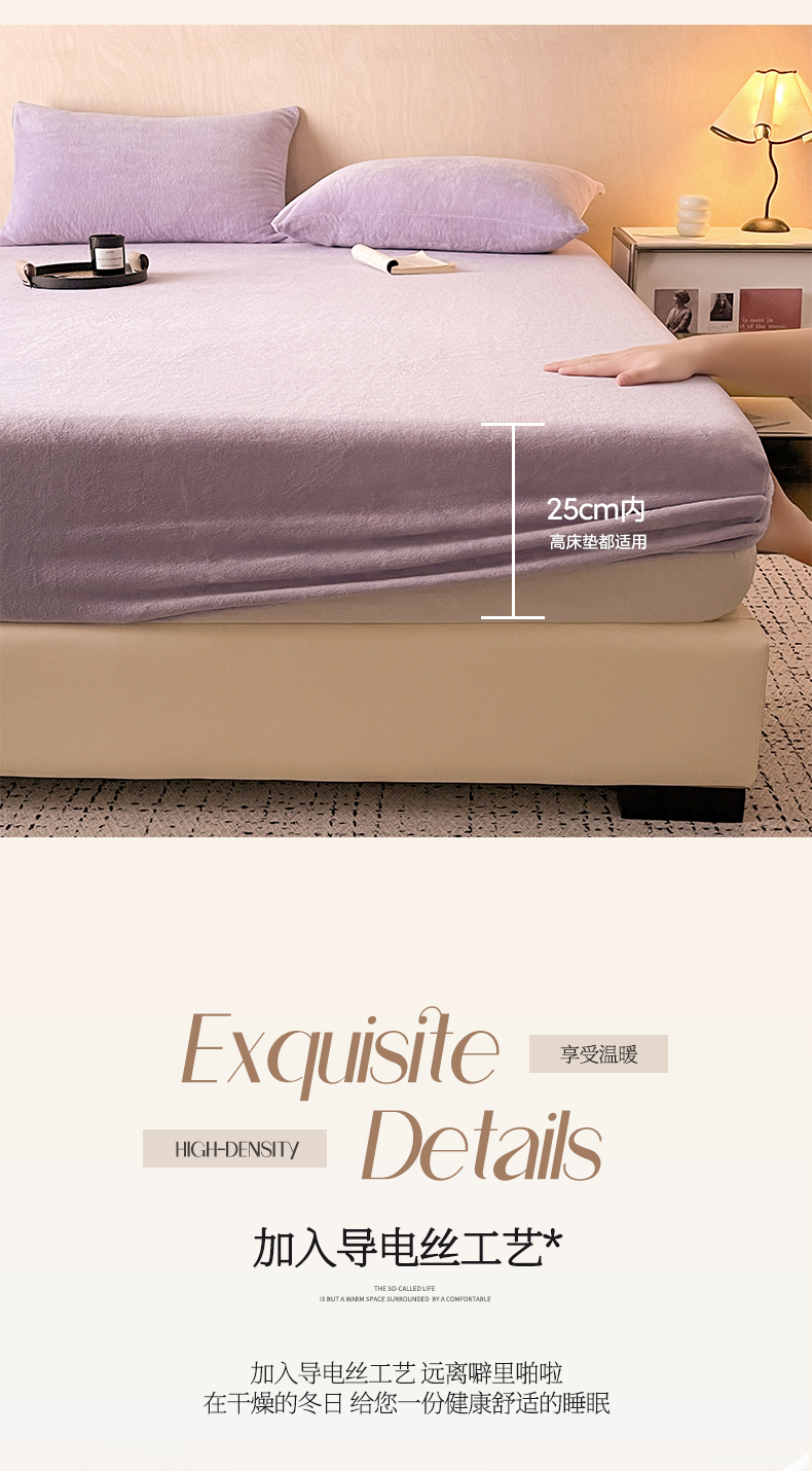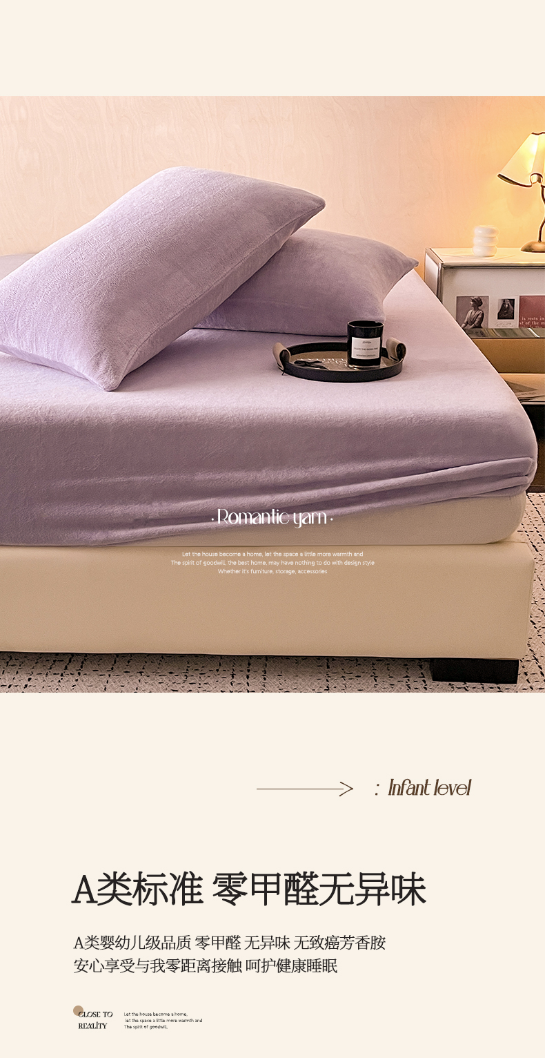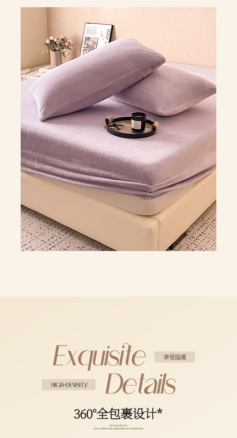 佰亿莱 2024新款高克重加厚牛奶绒单品床笠-梦娜系列 梦娜-丁香紫