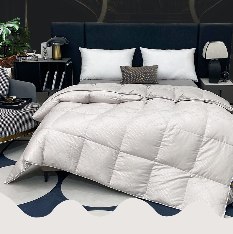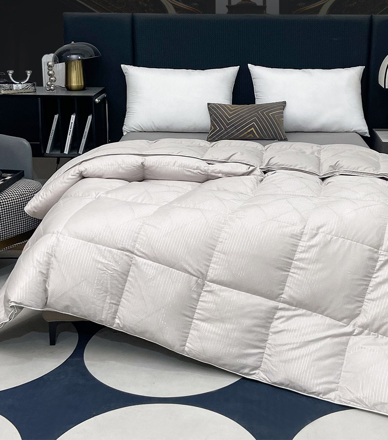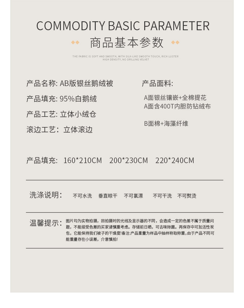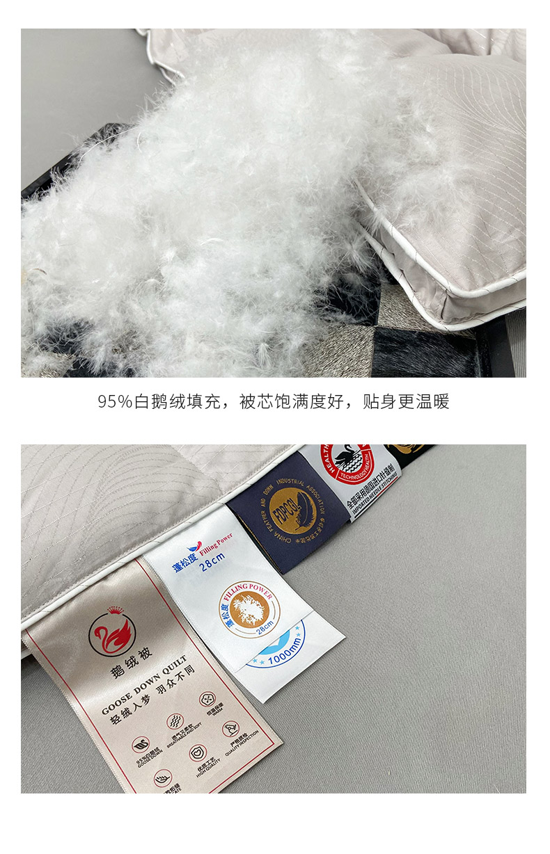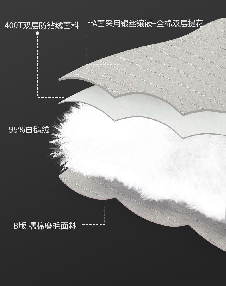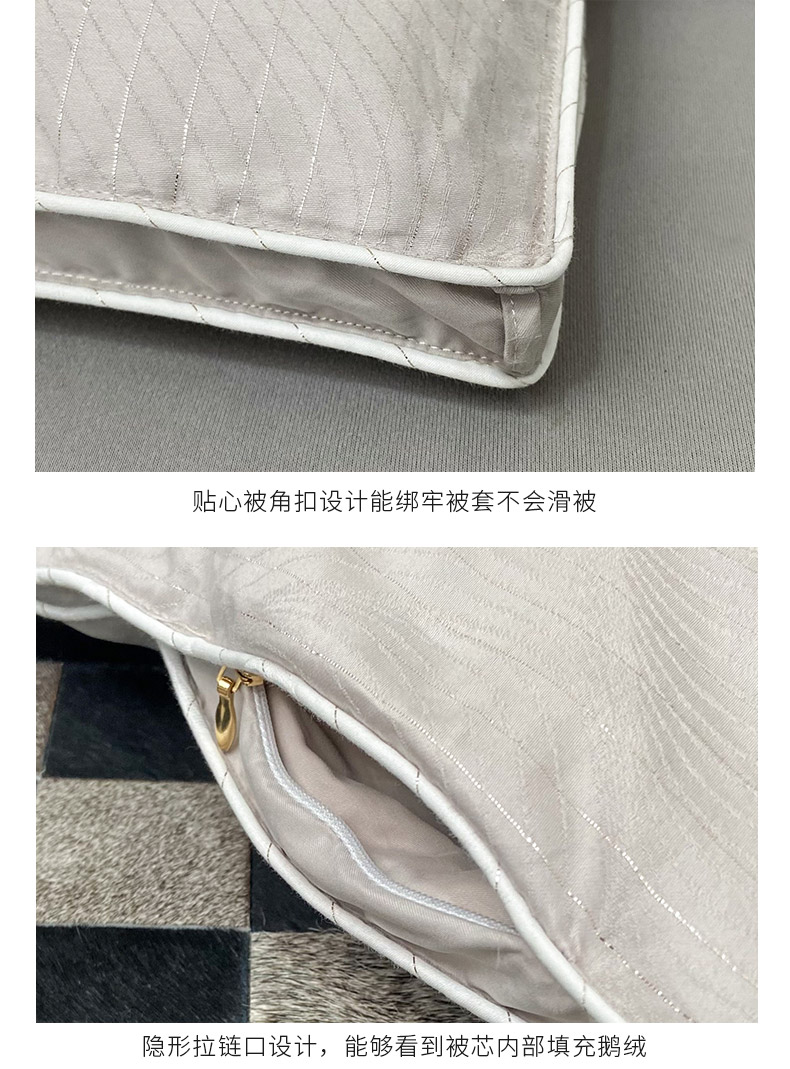 商品名称:绒研羽绒 2025新款AB版银丝提花单双层结合羽绒被子被芯 AB版银丝-银灰
