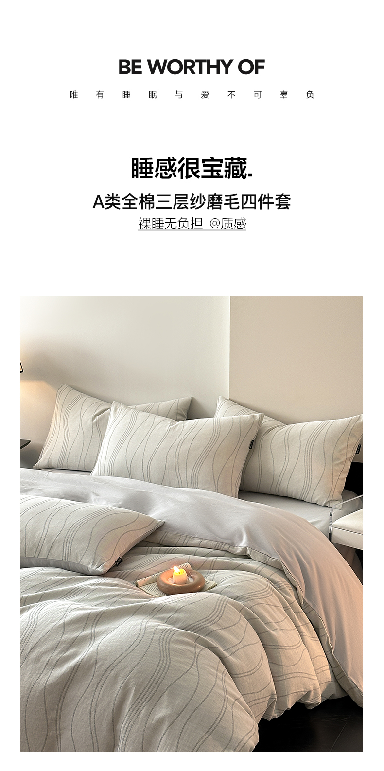 商品名称:(总)典曼家纺 2024秋冬新款A类三层纱加厚磨毛大提花四件套