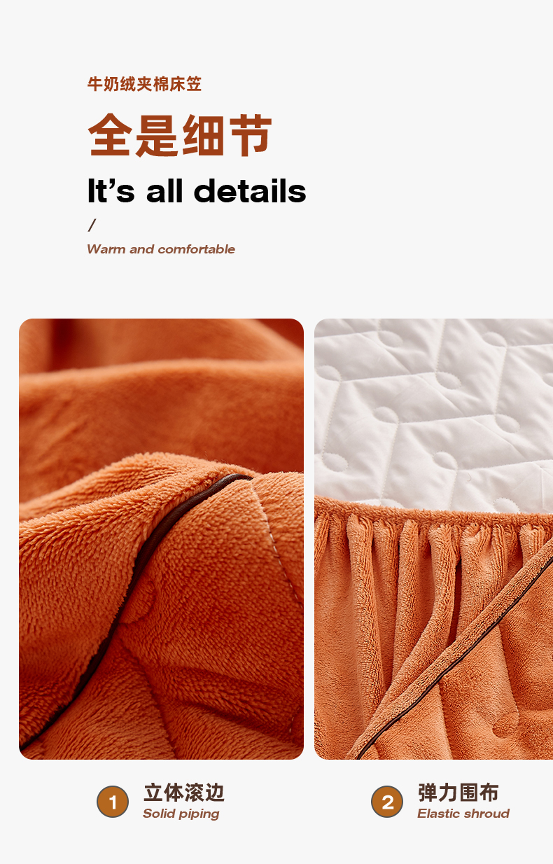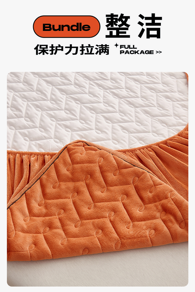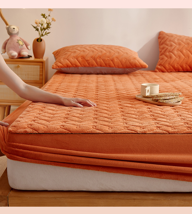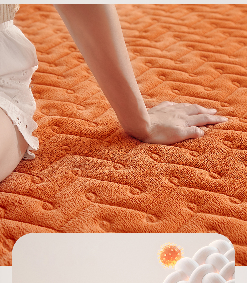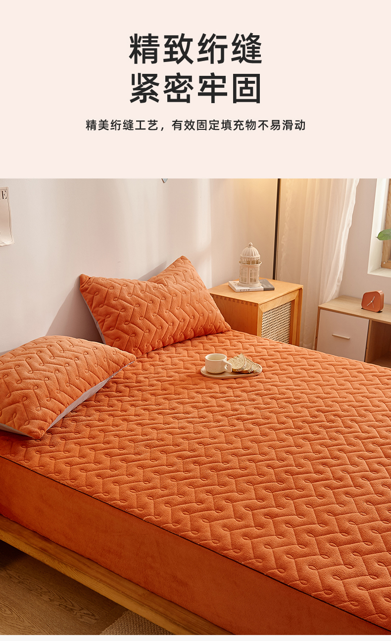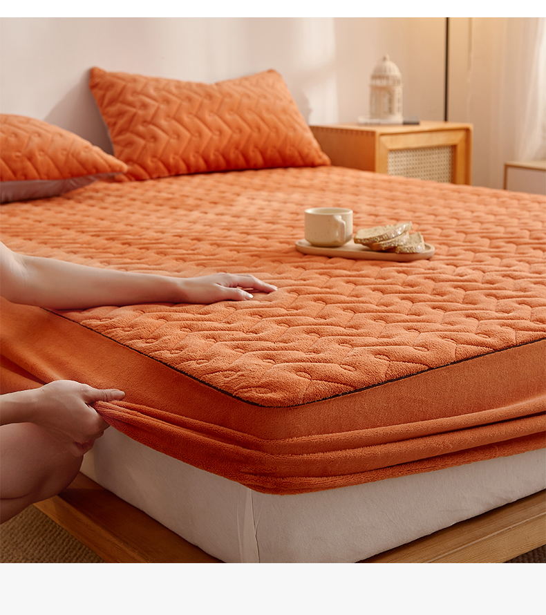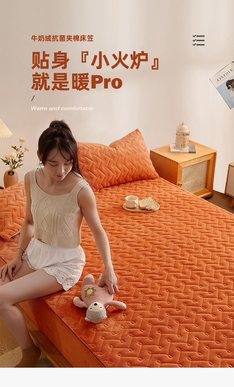 商品名称:布卢姆床垫 2025新款牛奶绒抗菌夹棉床笠--南枝系列 南枝-橙色