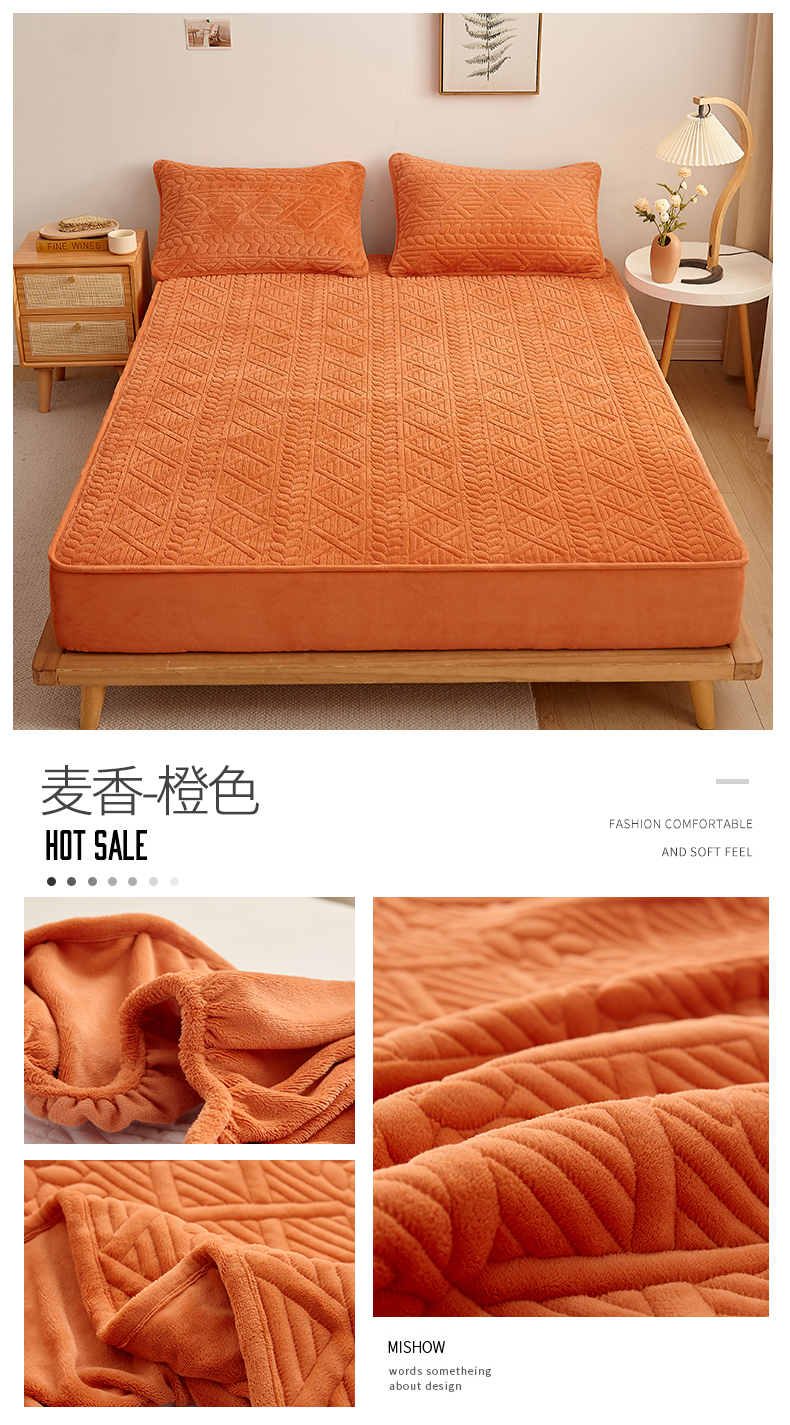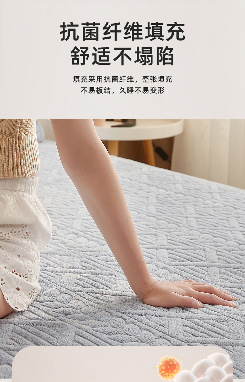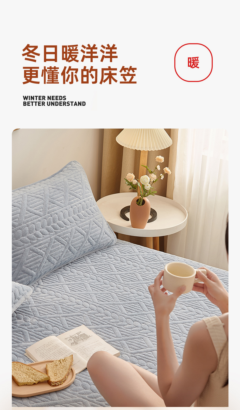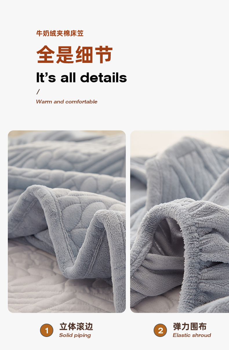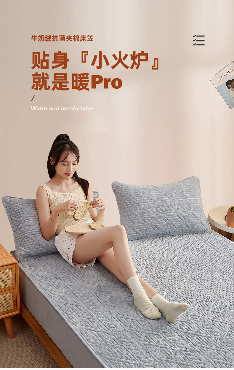 商品名称:布卢姆床垫 2025新款A类加厚牛奶绒抗菌床笠--麦香系列 麦香-蓝灰