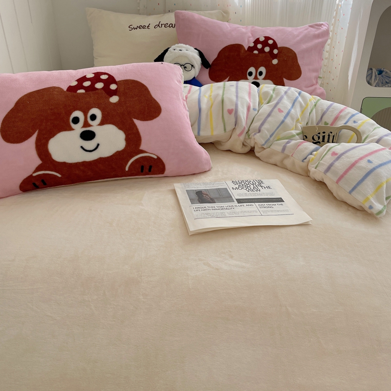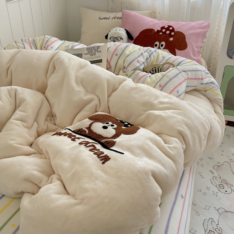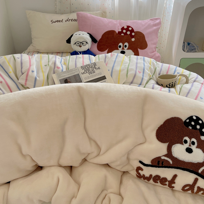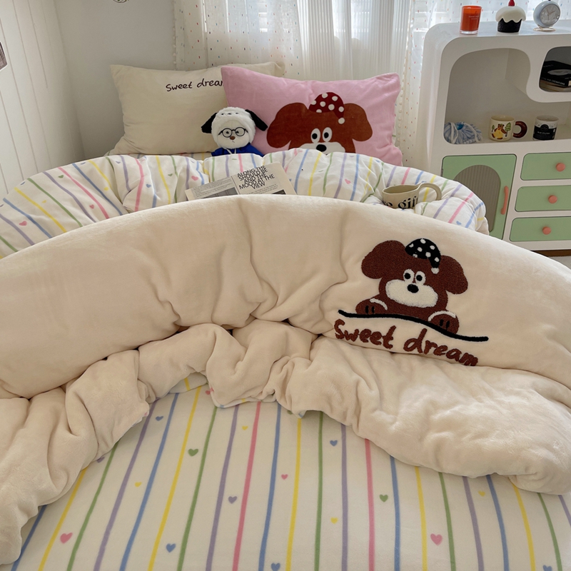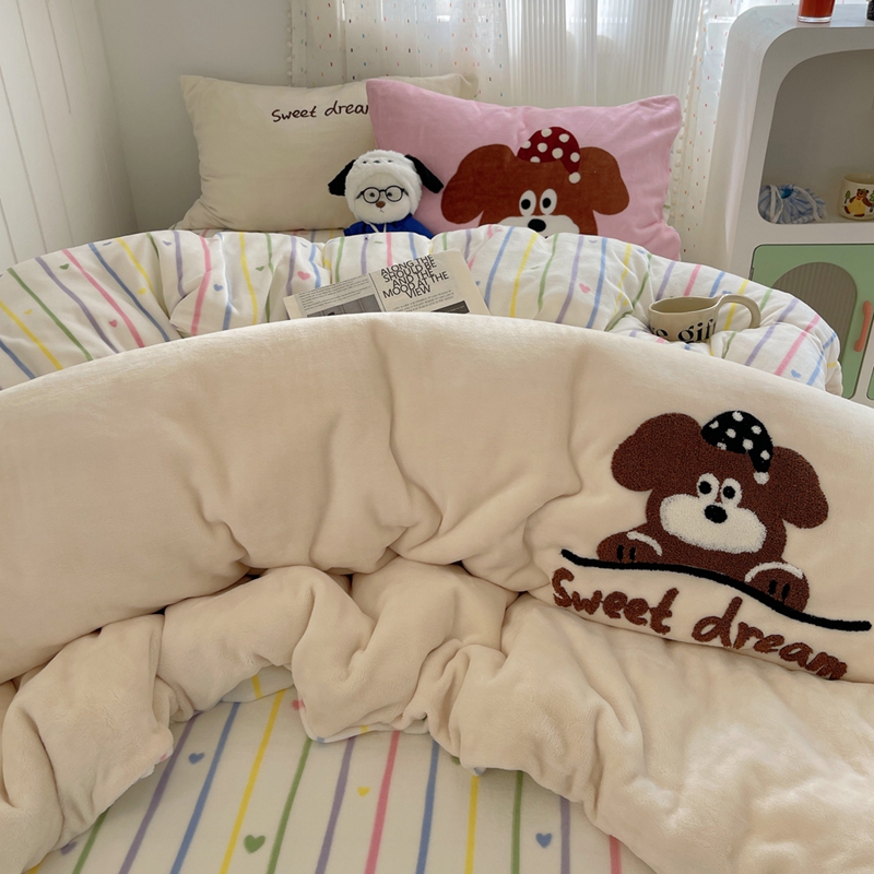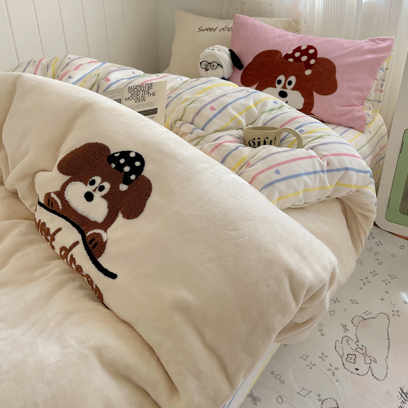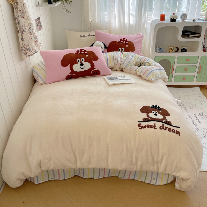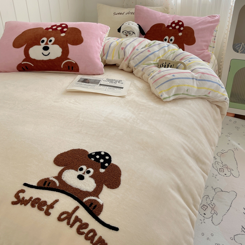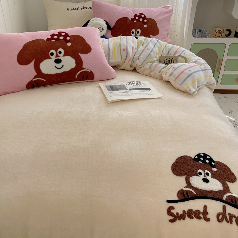 桃喜 2024新款牛奶绒绣花系列四件套 帽子小狗