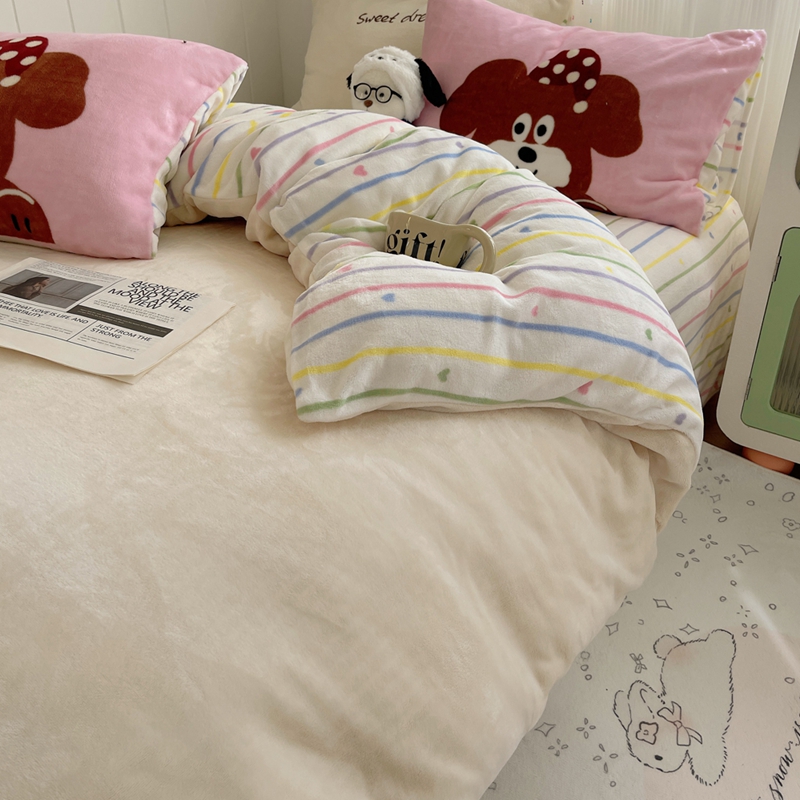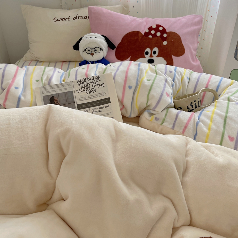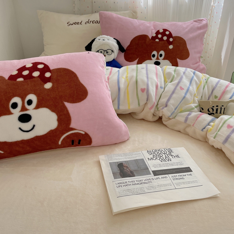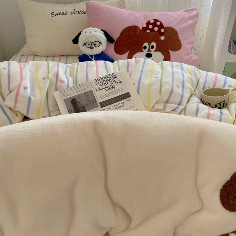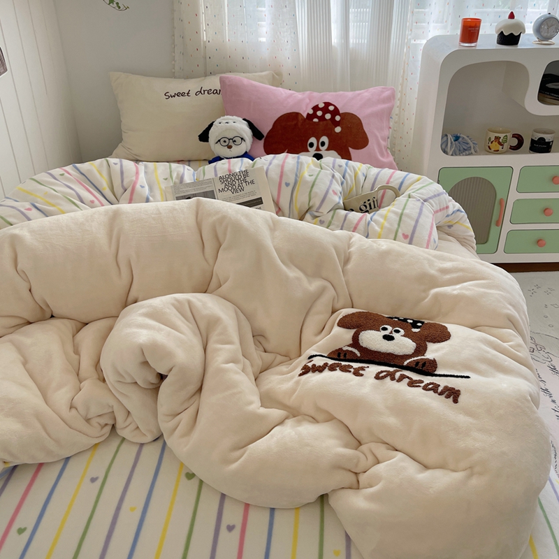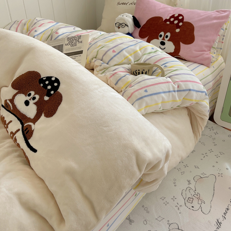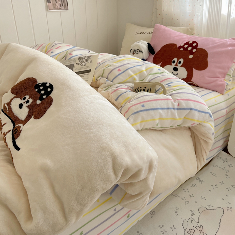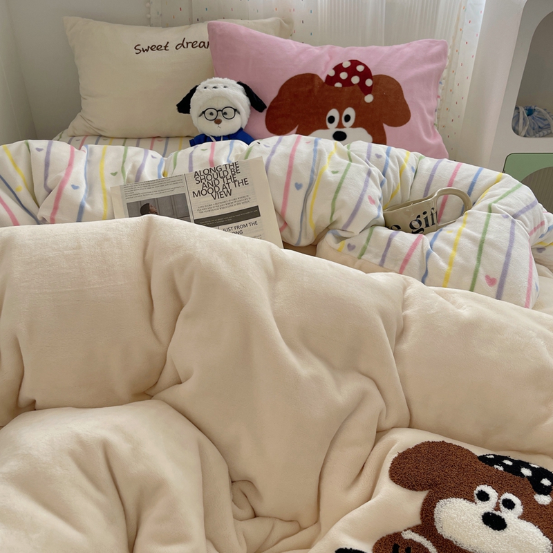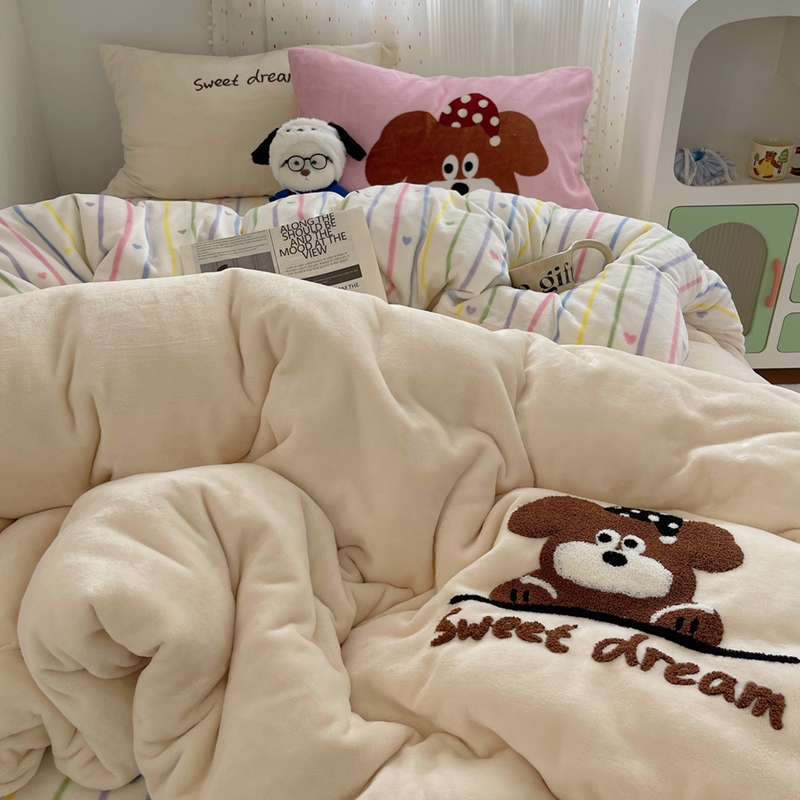 桃喜 2024新款牛奶绒绣花系列四件套 帽子小狗