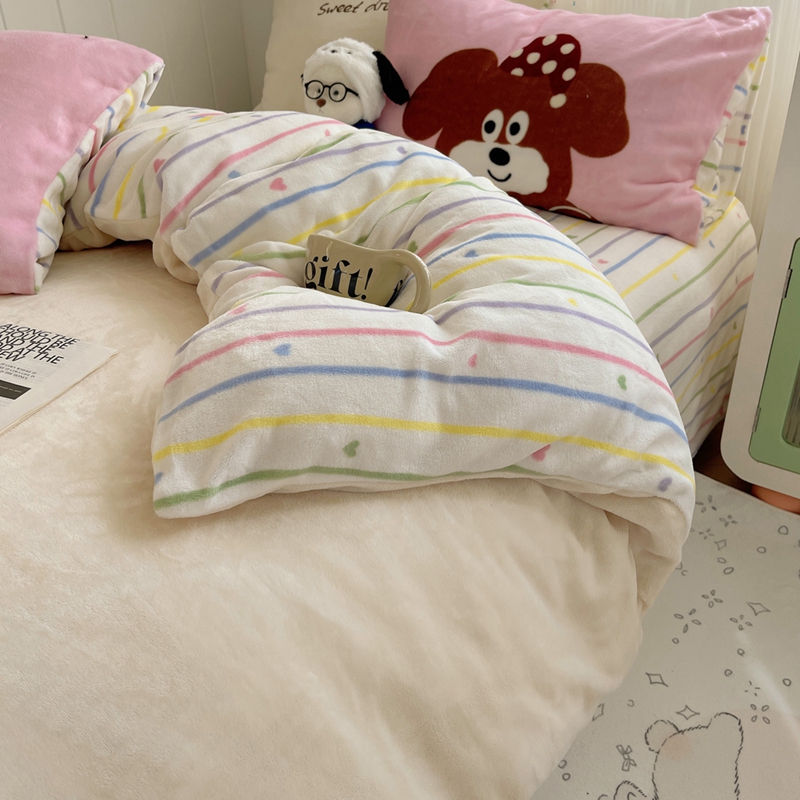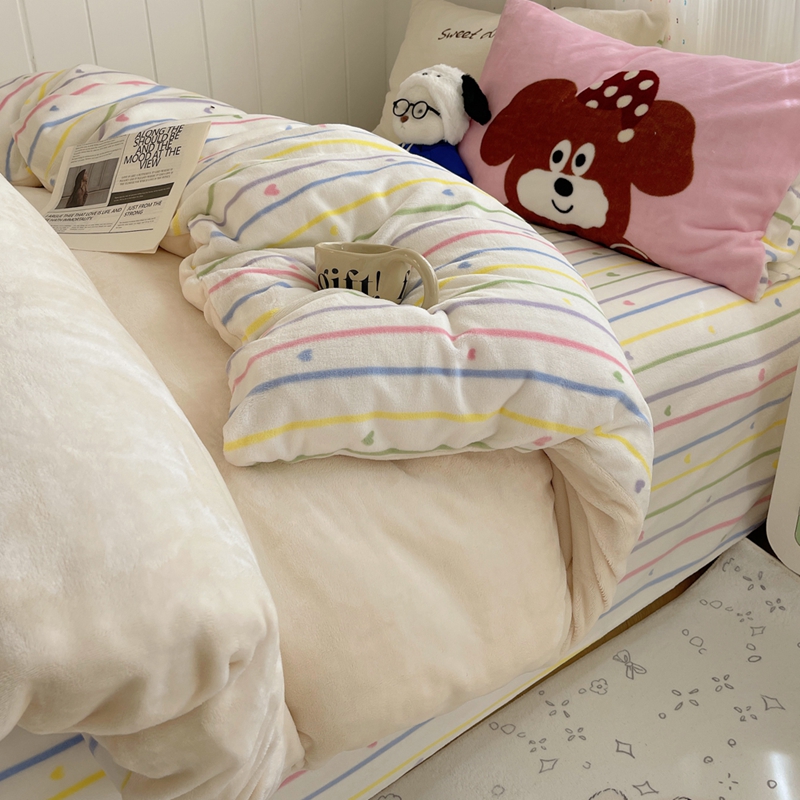 (总)桃喜 2025新款条纹牛奶绒系列四件套(会员-5),冰岛蓝,复古黑白,暮光森林,青缇葡萄