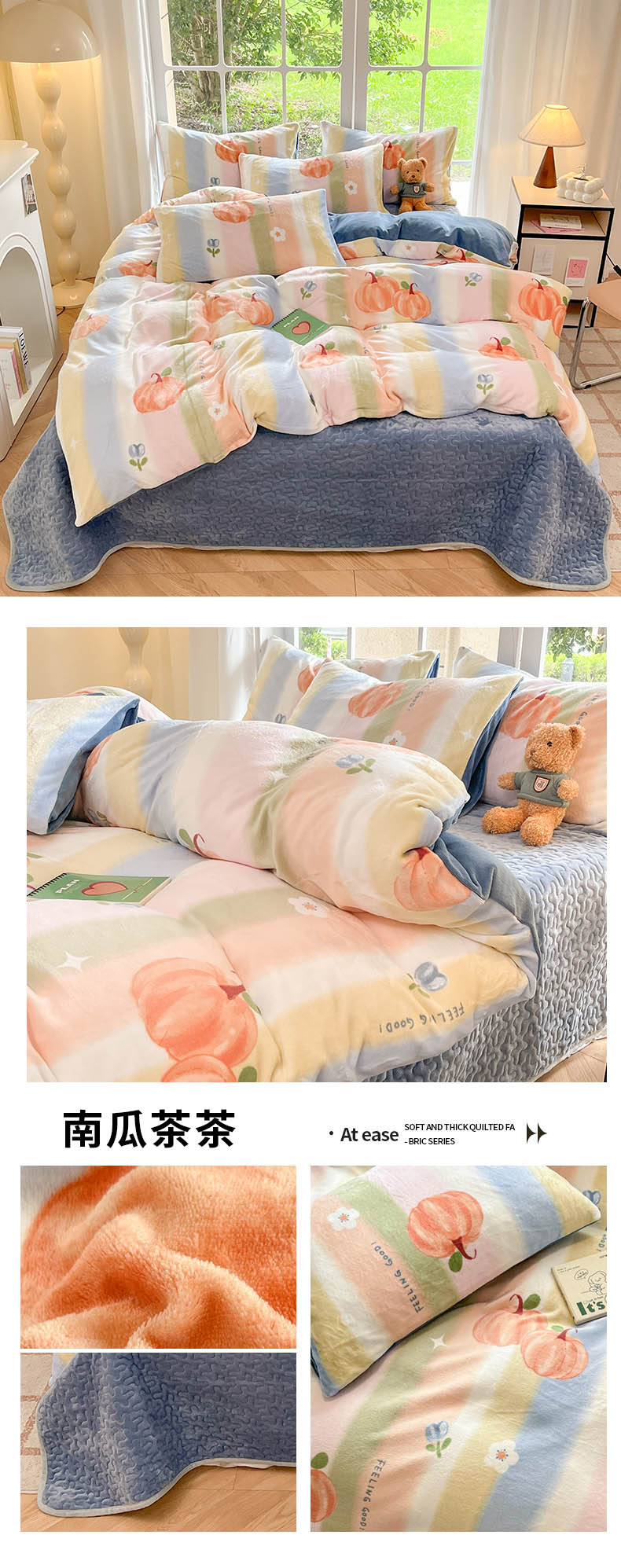 商品名称:新印象 2024新款韩式双面牛奶绒床盖四件套 南瓜茶茶