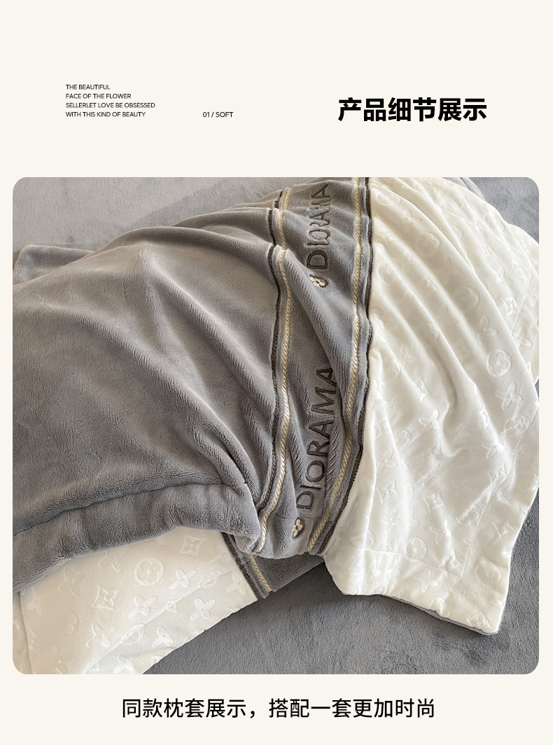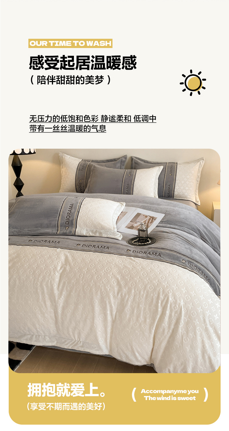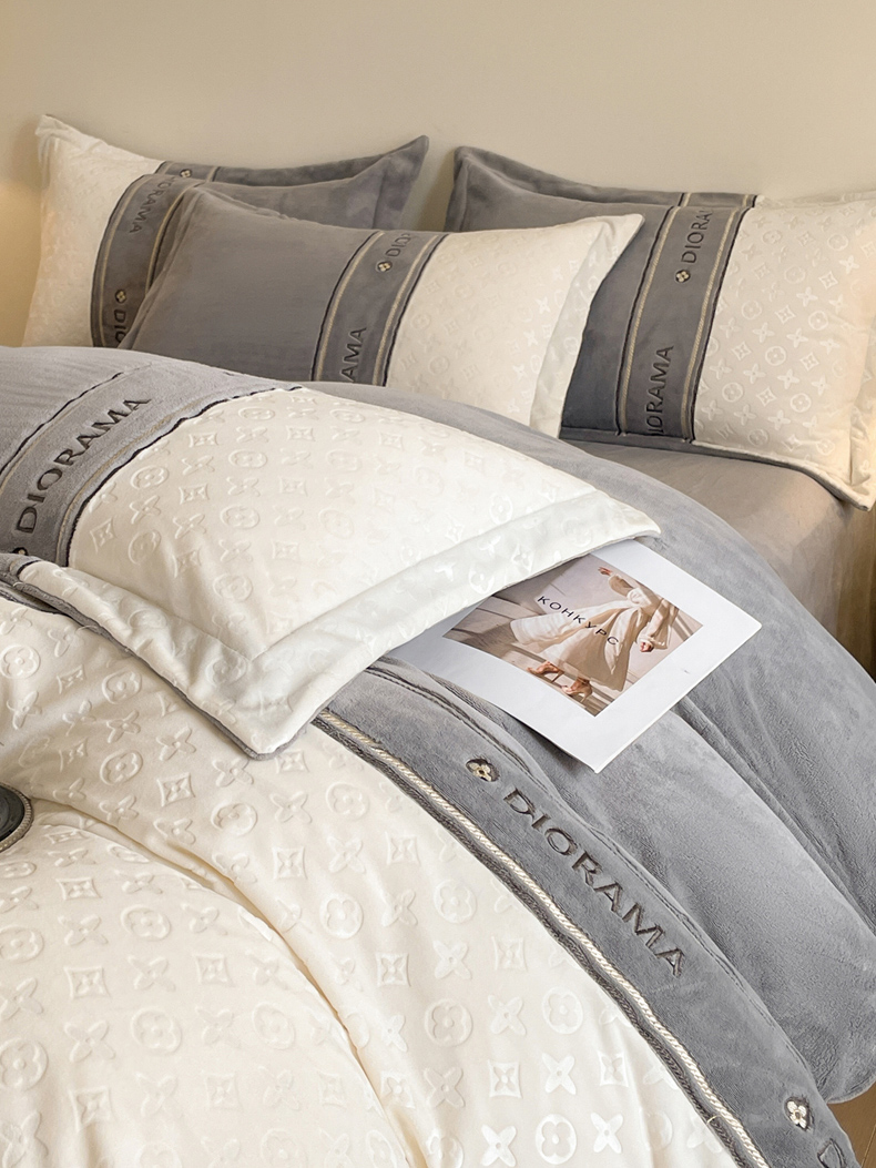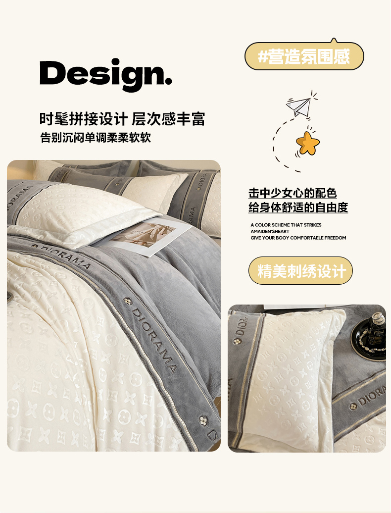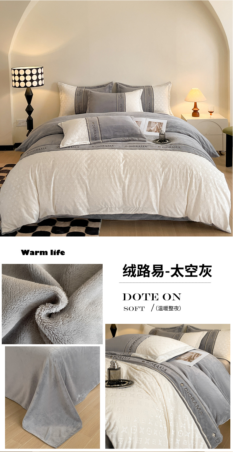 商品名称:慕木家纺 2025新款牛奶绒路易刺绣拼接四件套 绒路易-太空灰