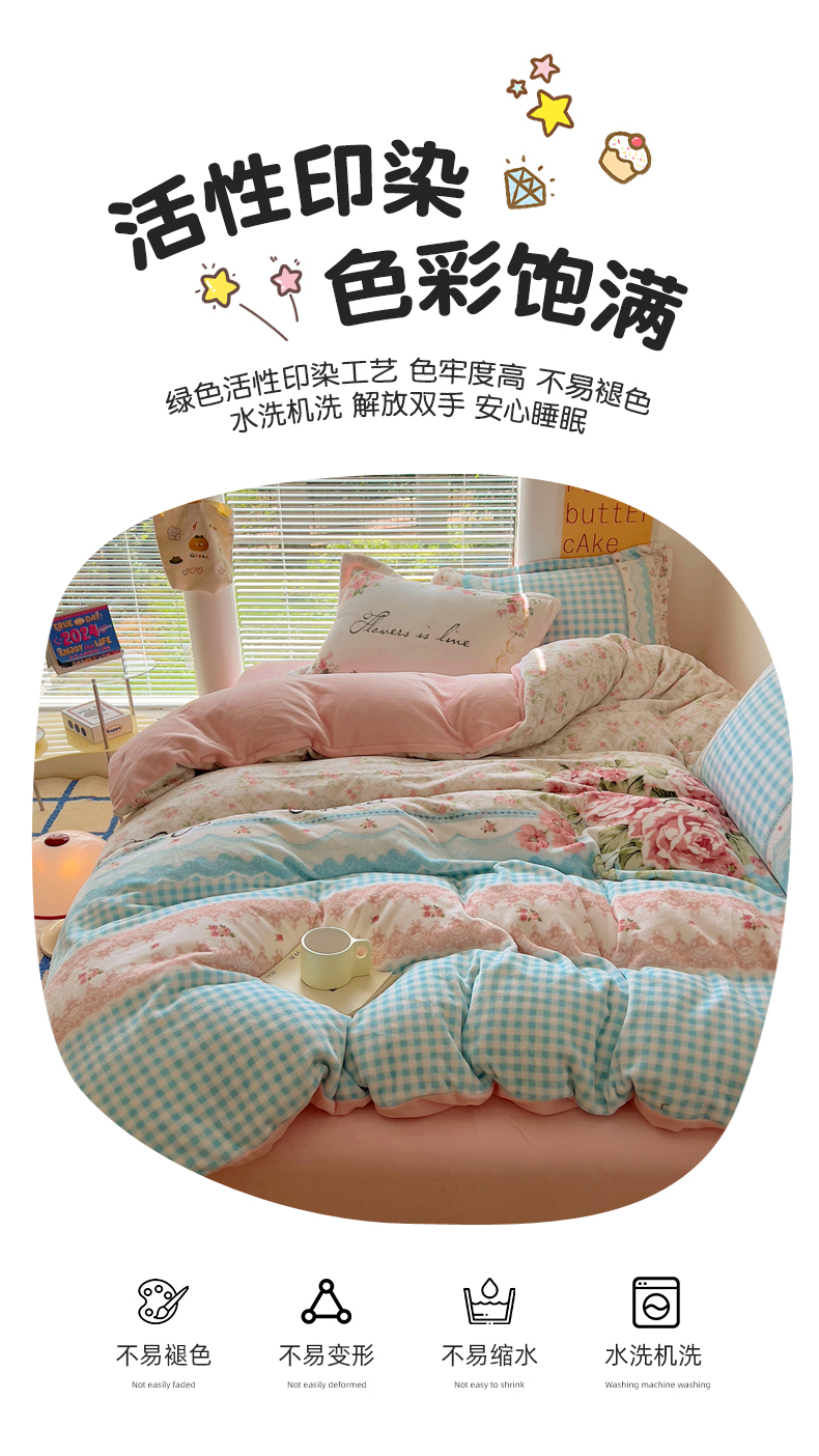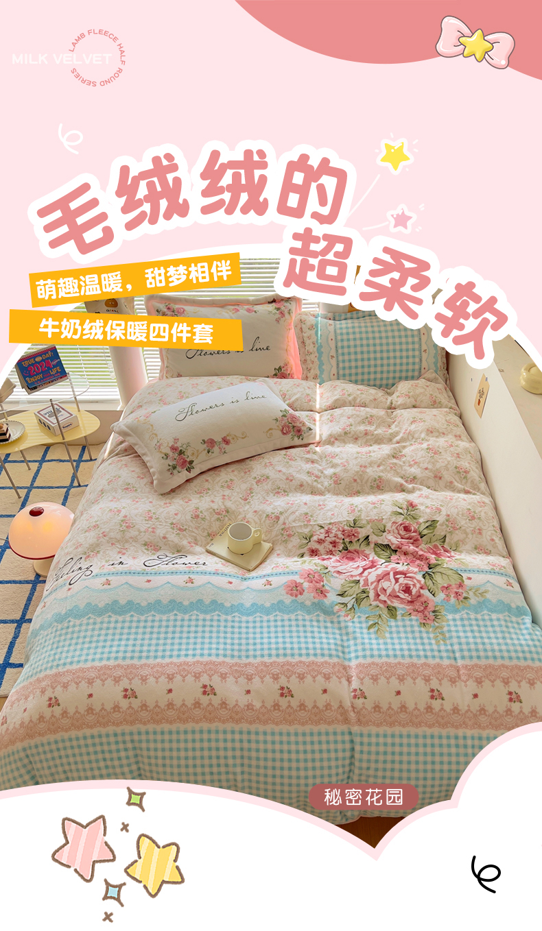 金爱家 2024新款ins大版牛奶绒数码印花四件套 绒大版-秘密花园