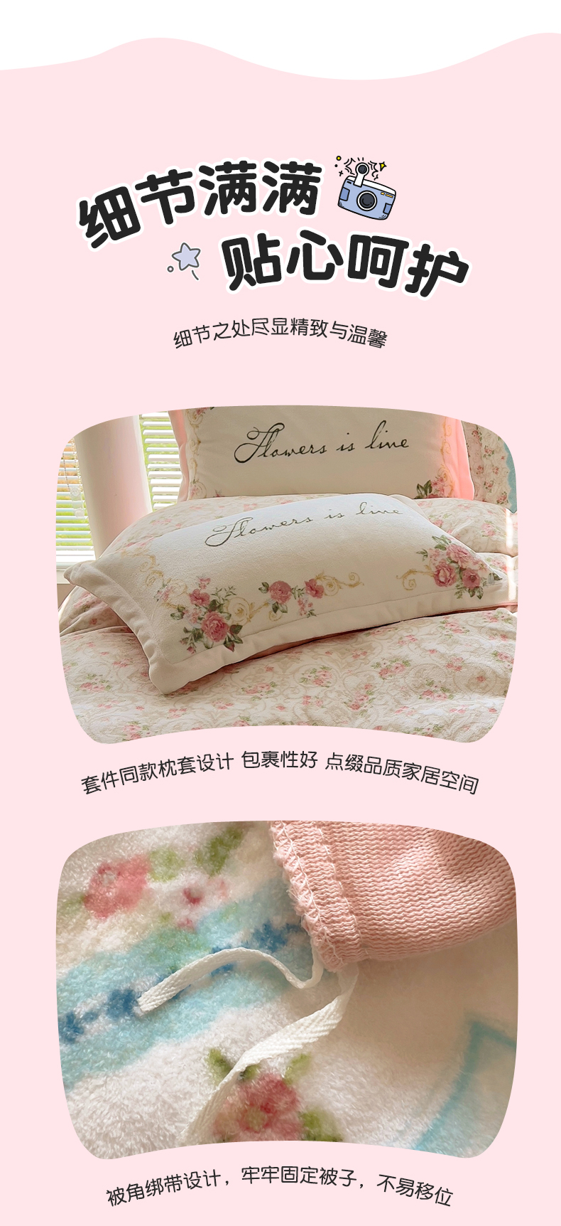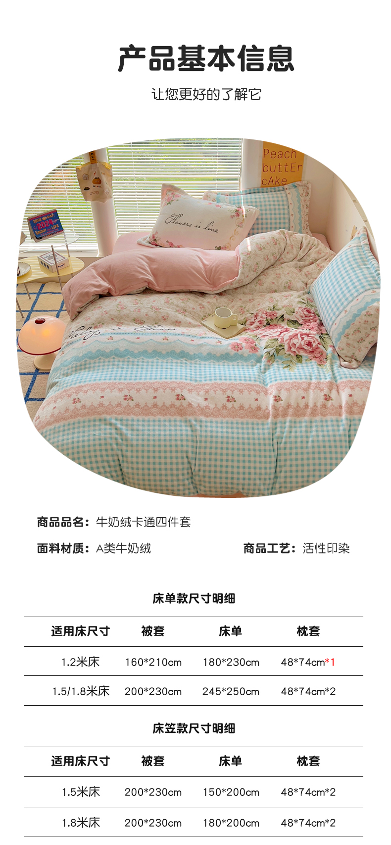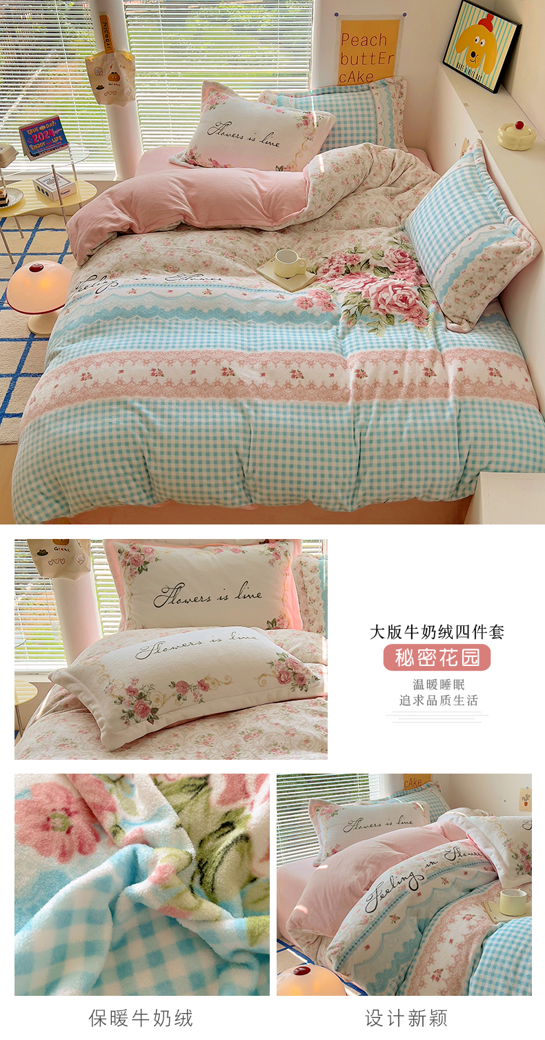 商品名称:金爱家 2024新款ins大版牛奶绒数码印花四件套 绒大版-秘密花园