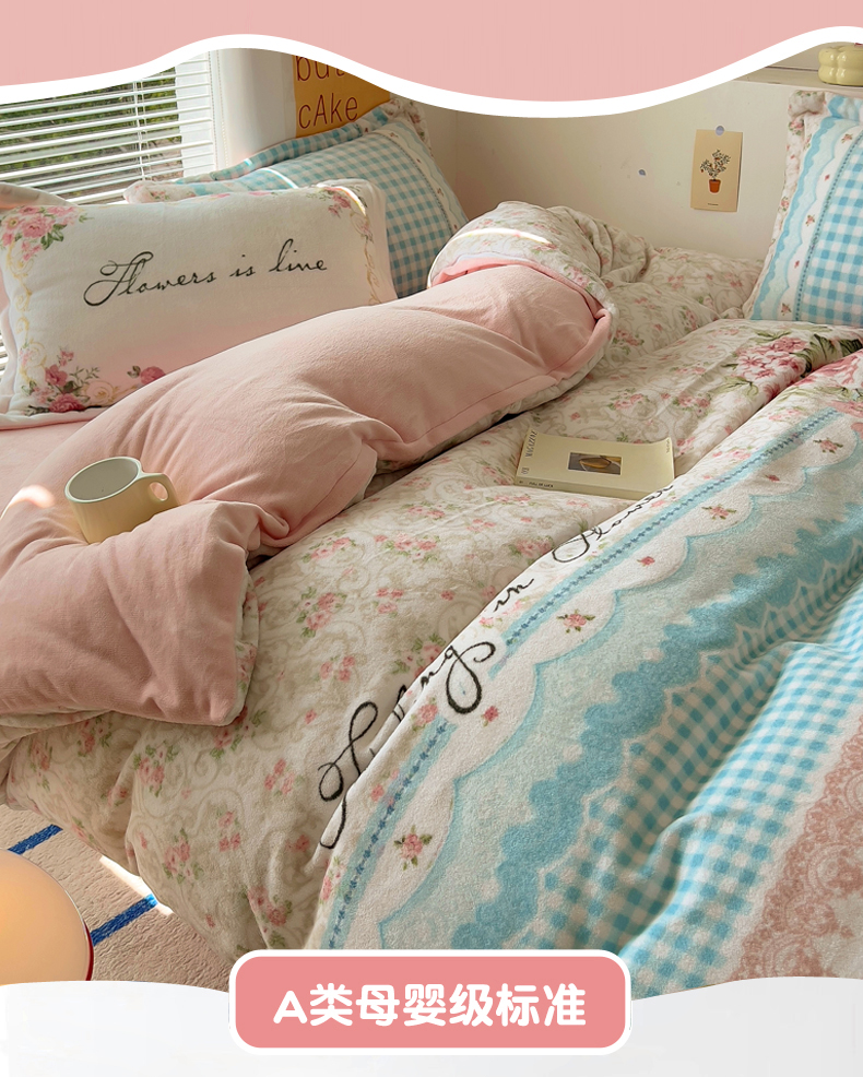 (总)金爱家 2025新款赫本风牛奶绒-花边款四件套,花边款-蝶恋花,花边款-繁花,花边款-黑白花朵,花边款-蝴蝶,花边款-盛开,花边款-枝花