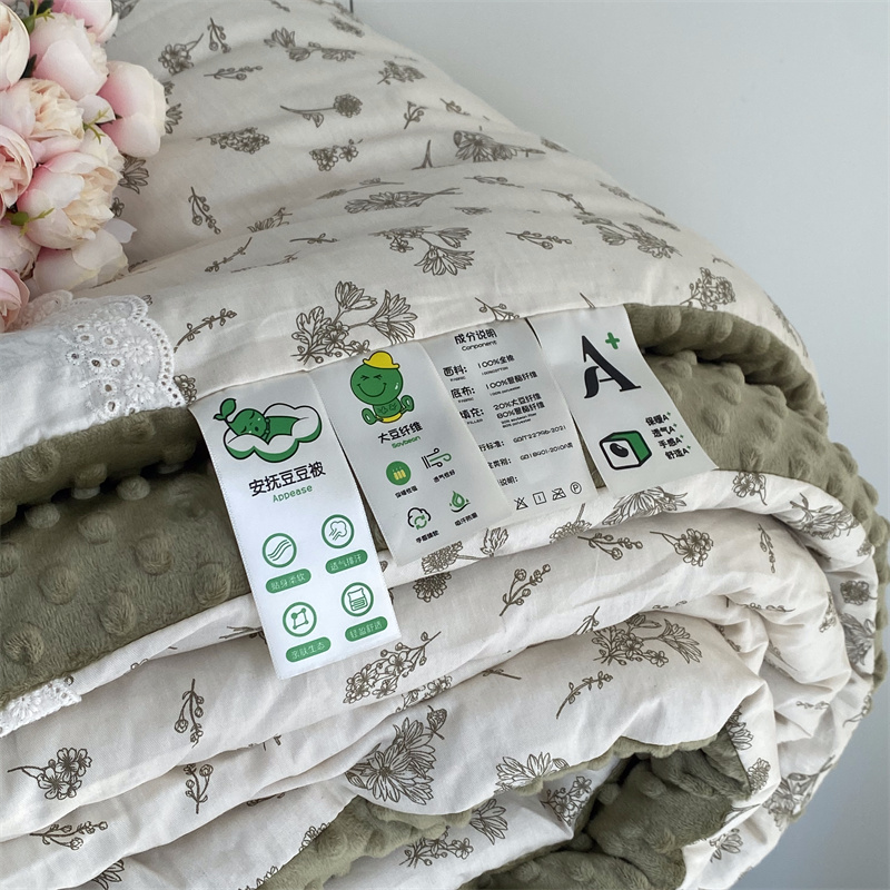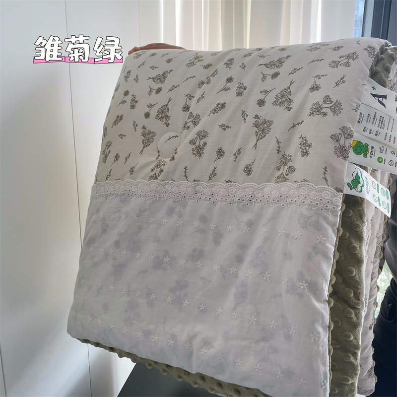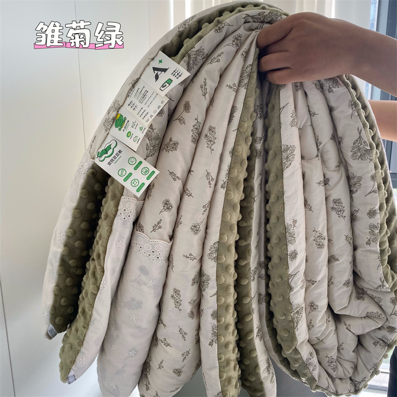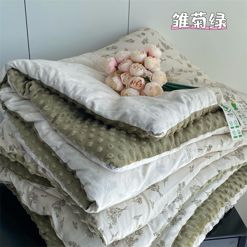 商品名称:2025新款秋冬季棉加豆豆绒法式花边款豆豆被被芯雏菊绿