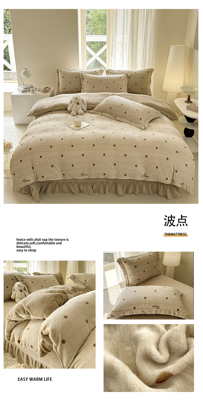 商品名称:富之航 2024新款印花牛奶绒床盖四件套 波点