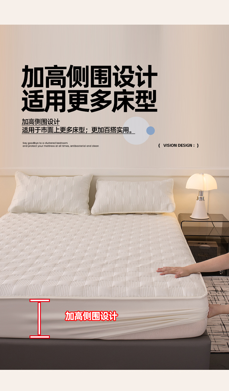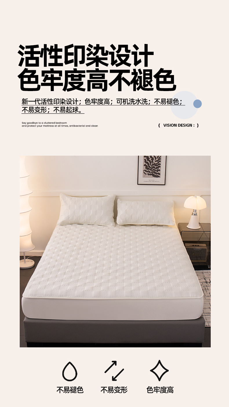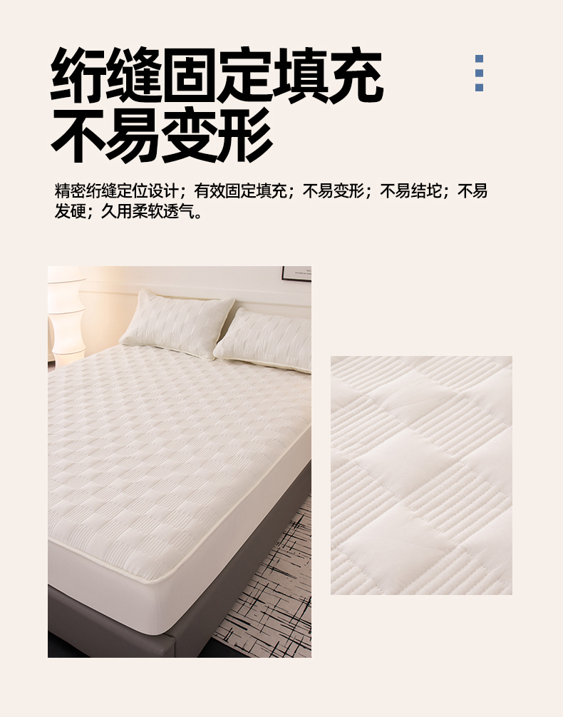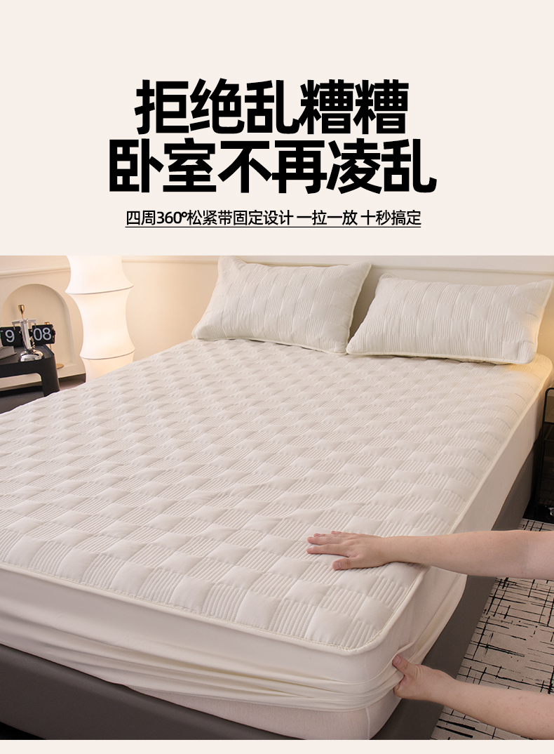 商品名称:暖季家纺 2025新款夹棉防水床笠成人款 莱律-米白
