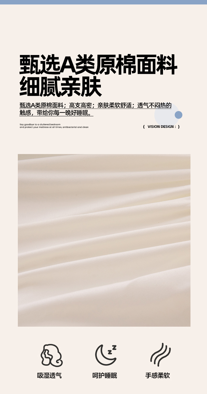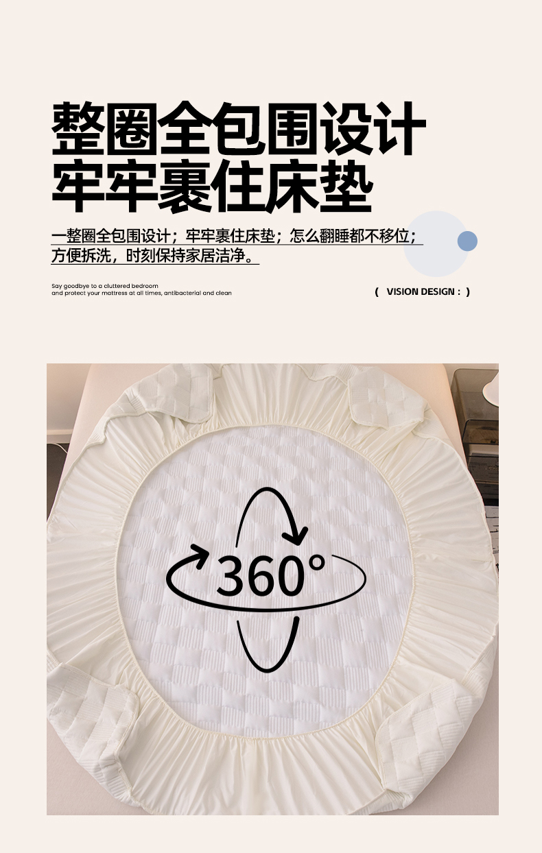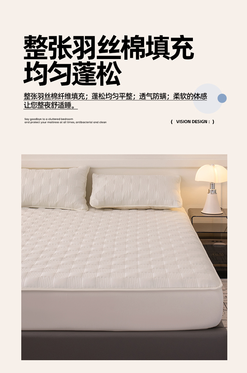 商品名称:暖季家纺 2025新款夹棉防水床笠成人款 莱律-米白