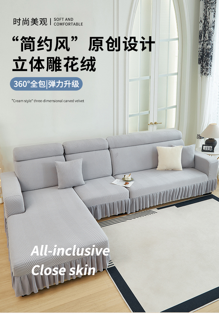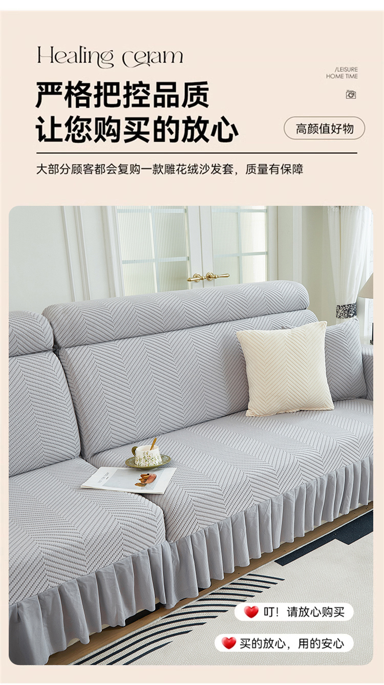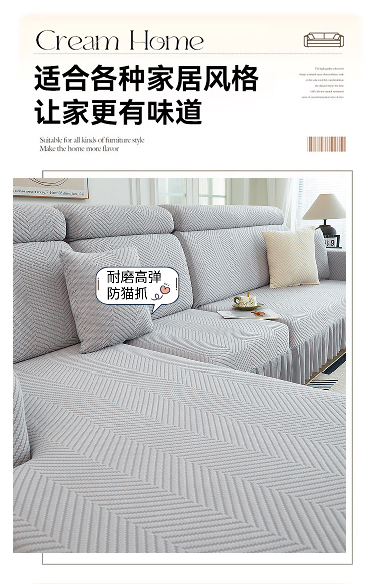 当前位置: 91家纺网 > 商品网购 > 居家布艺 > 坐垫/椅垫/沙发垫 > 沙发垫 > 千彤沙发垫 2024新款拉花绒-全包沙发套-人字纹系列 银灰