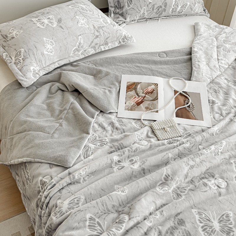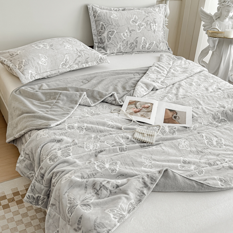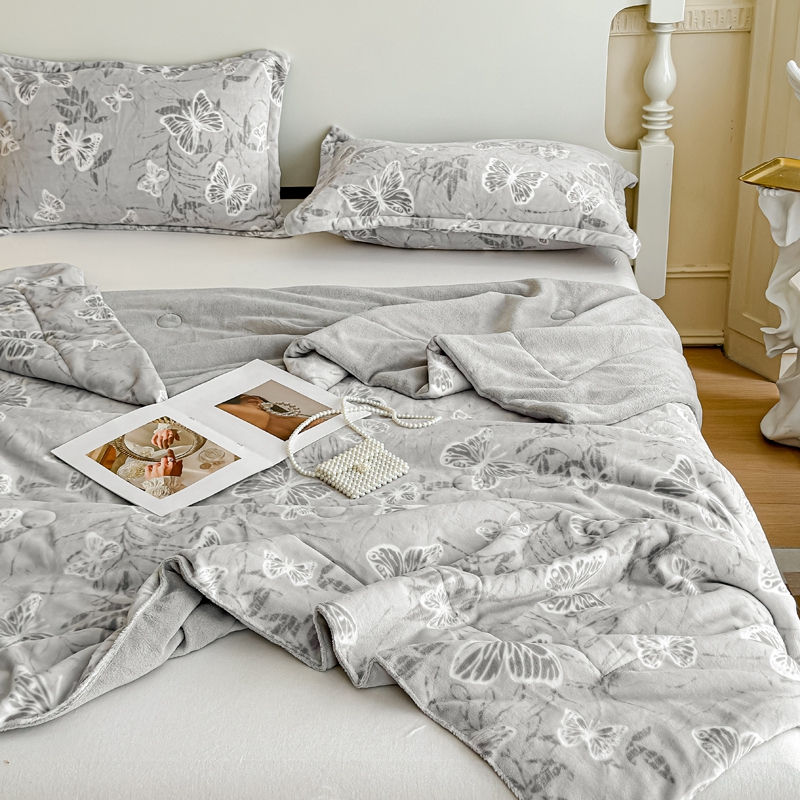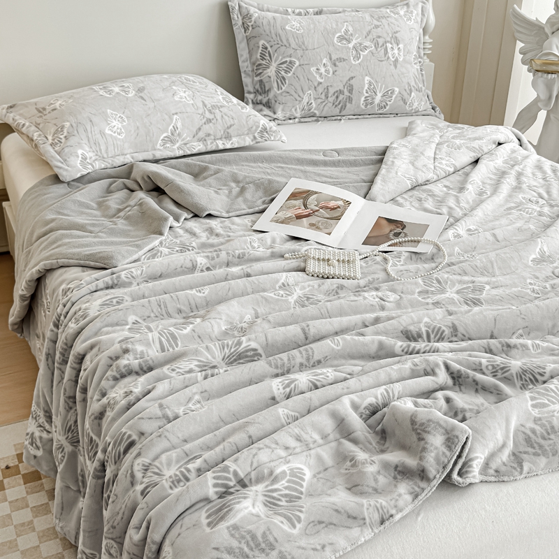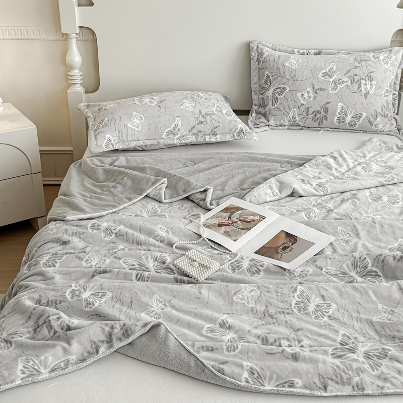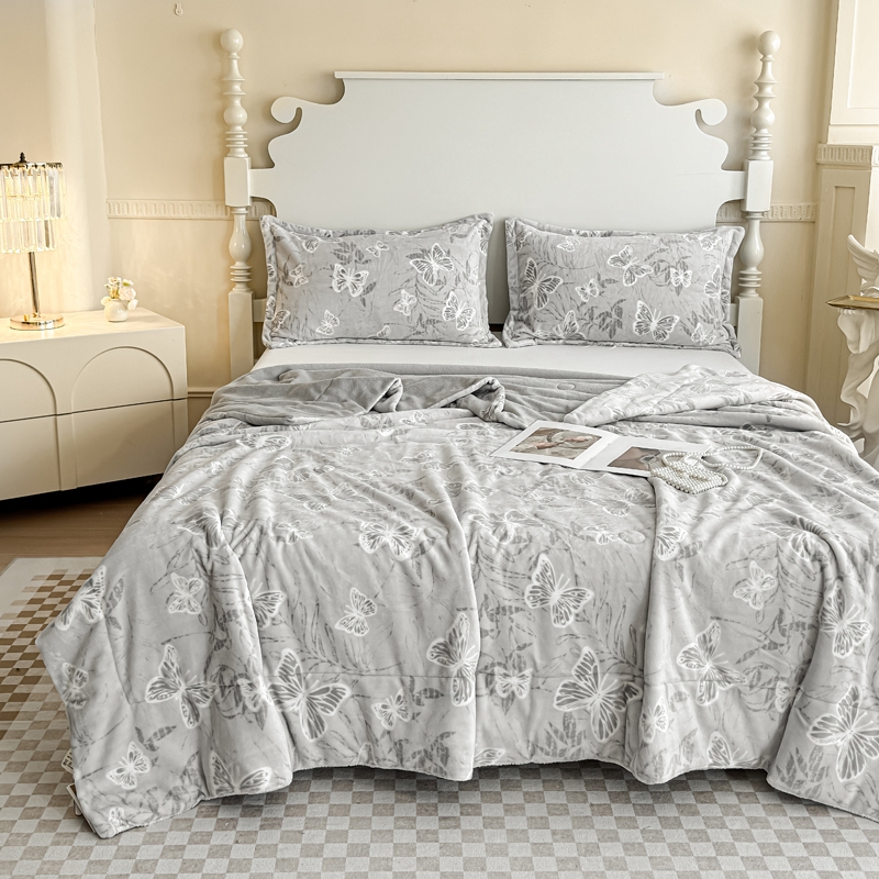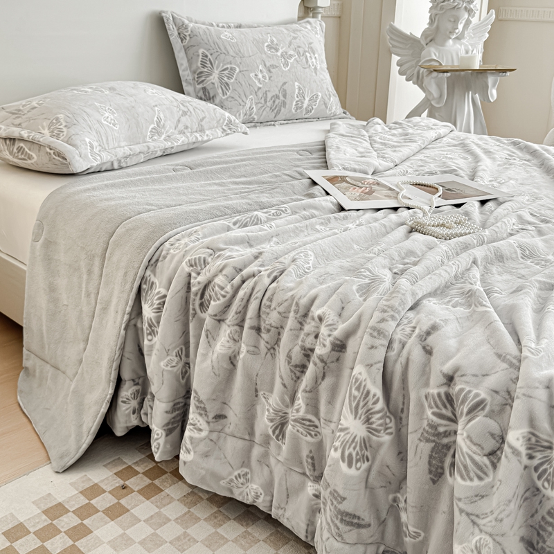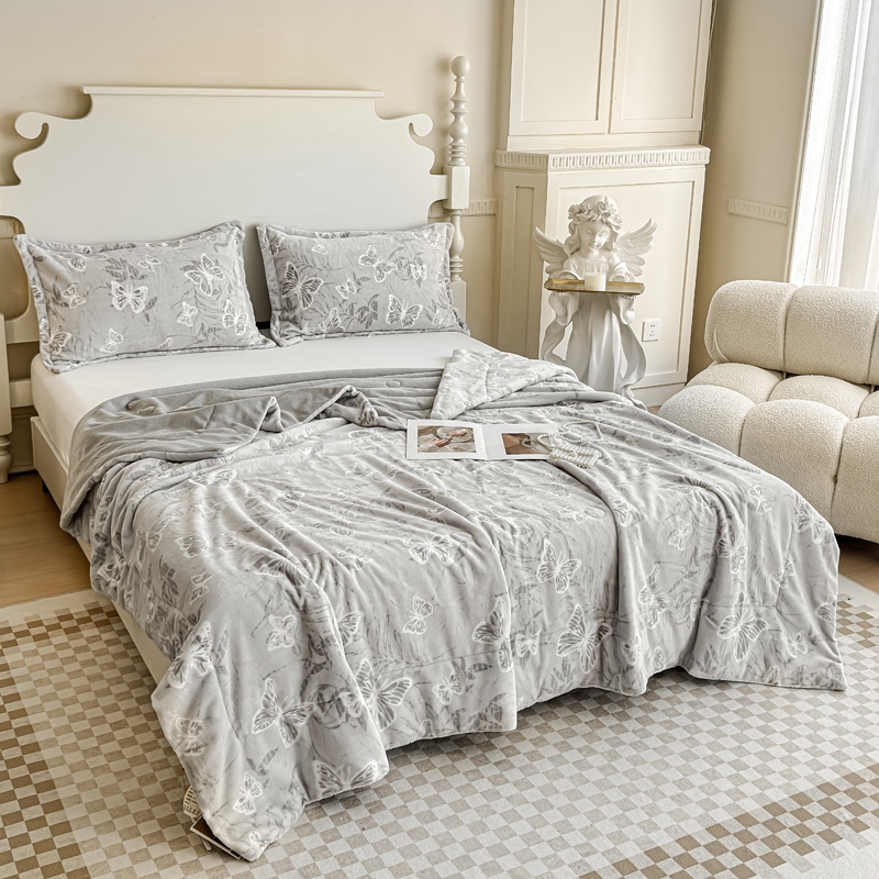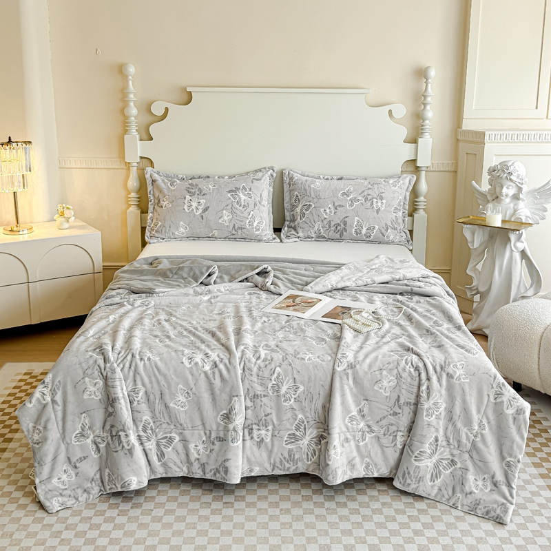商品名称:金丝鸟家纺 2024新款加厚240g立体雕花牛奶绒夹棉绗缝毛毯 蝴蝶飞 灰ab毯