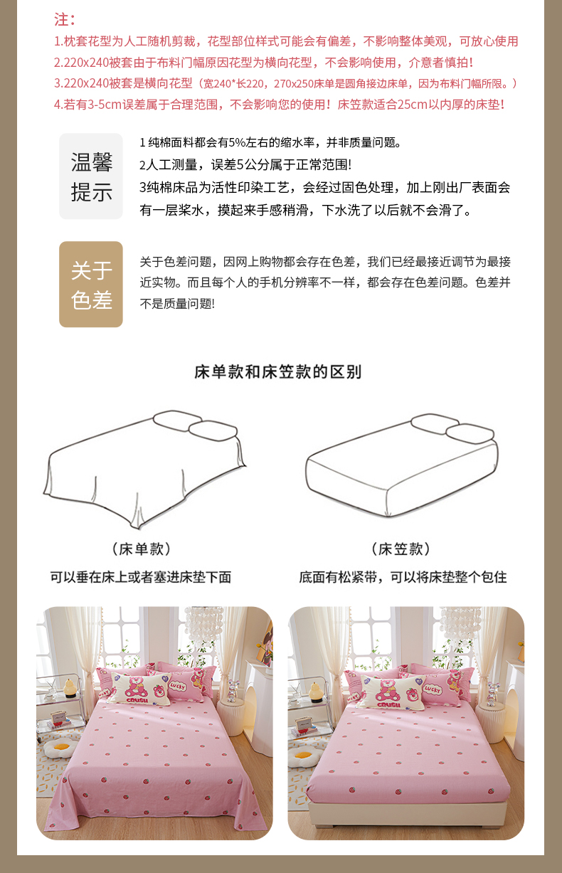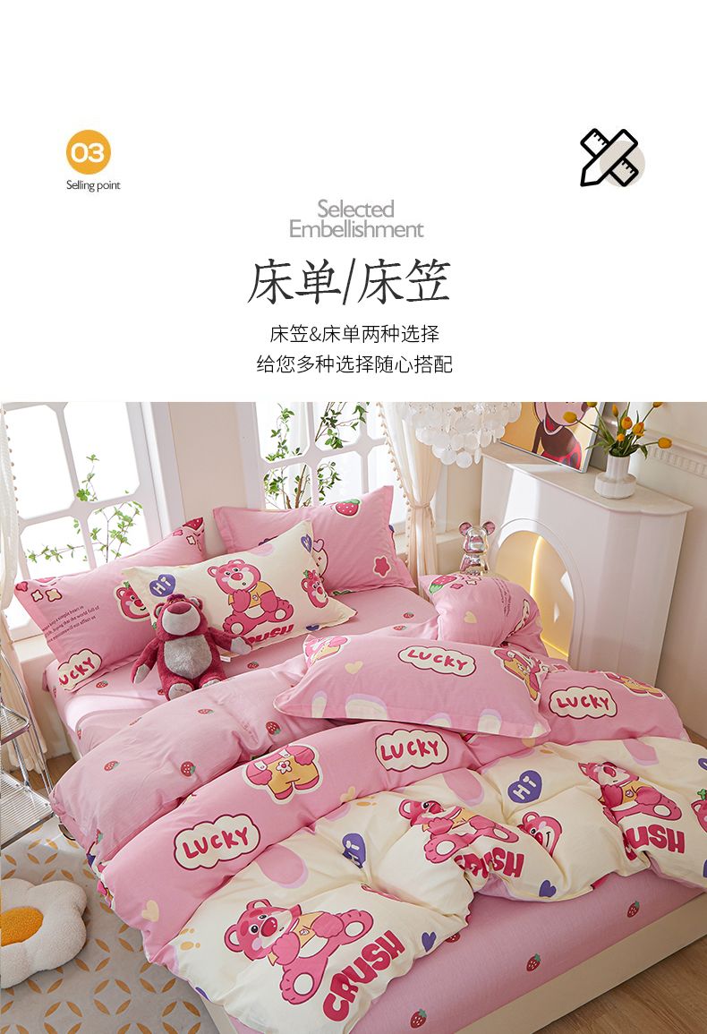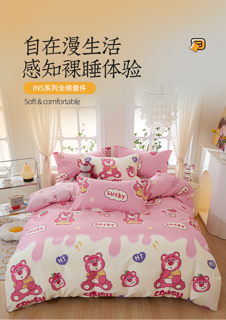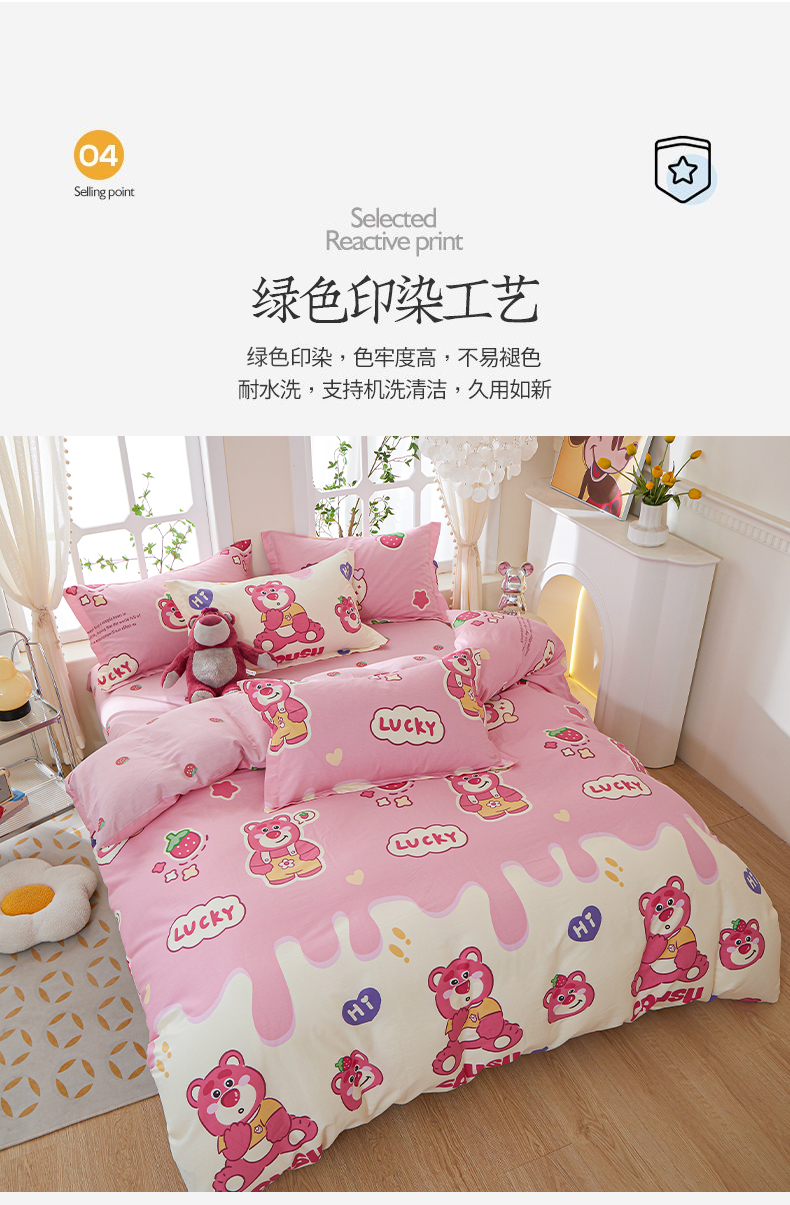 当前位置: 91家纺网 > 商品网购 > 床品套件 > 四件套 > 全棉活性四件套 > 钰伶 新款全棉简约12868印花纯棉四件套(预留6厘米缩水尺寸)草莓熊宝
