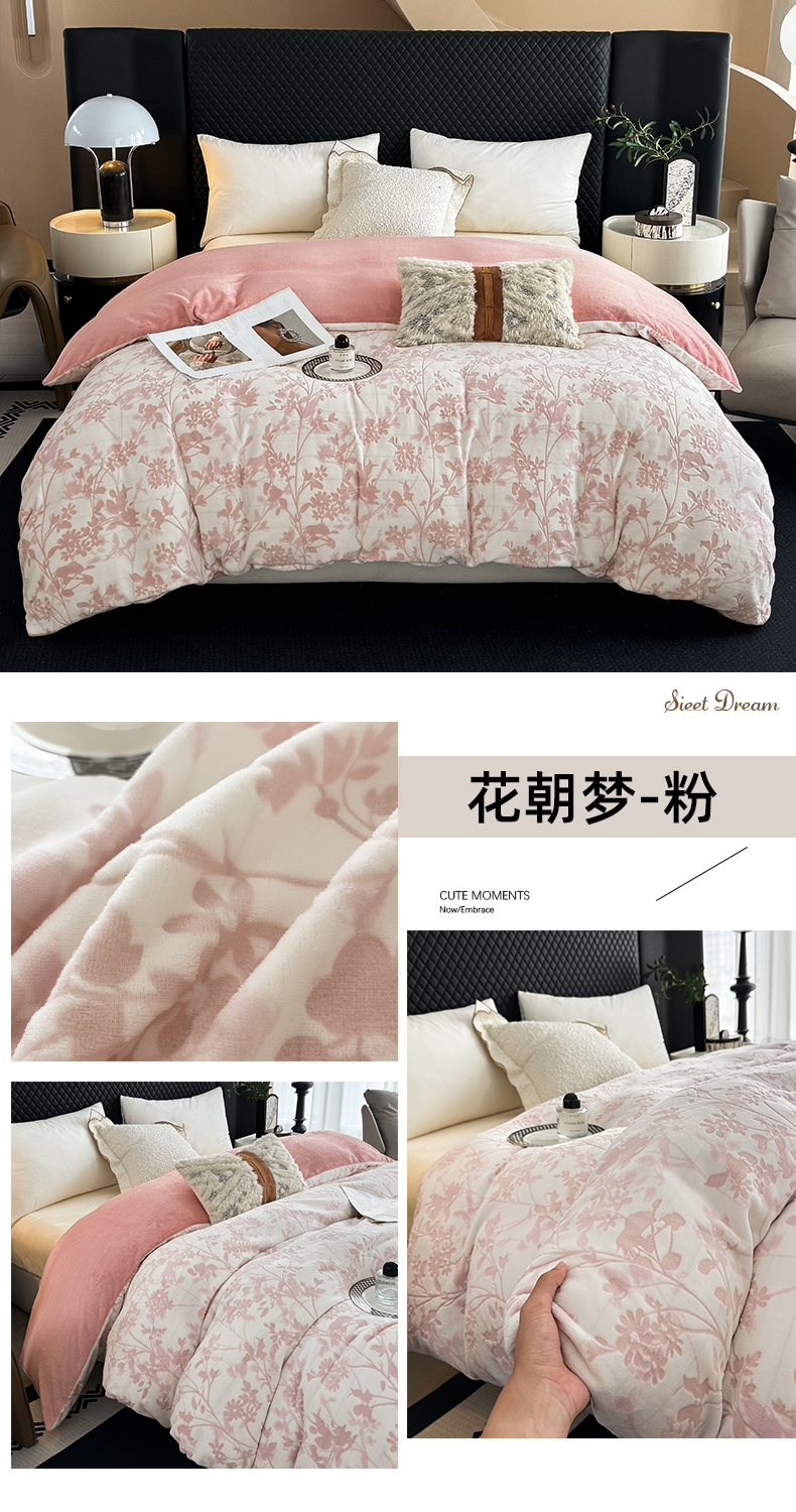 • 91家纺网 家纺一手货源 找家纺 金盛纺 2024新款高克重雕花绒单被套 花朝梦-粉