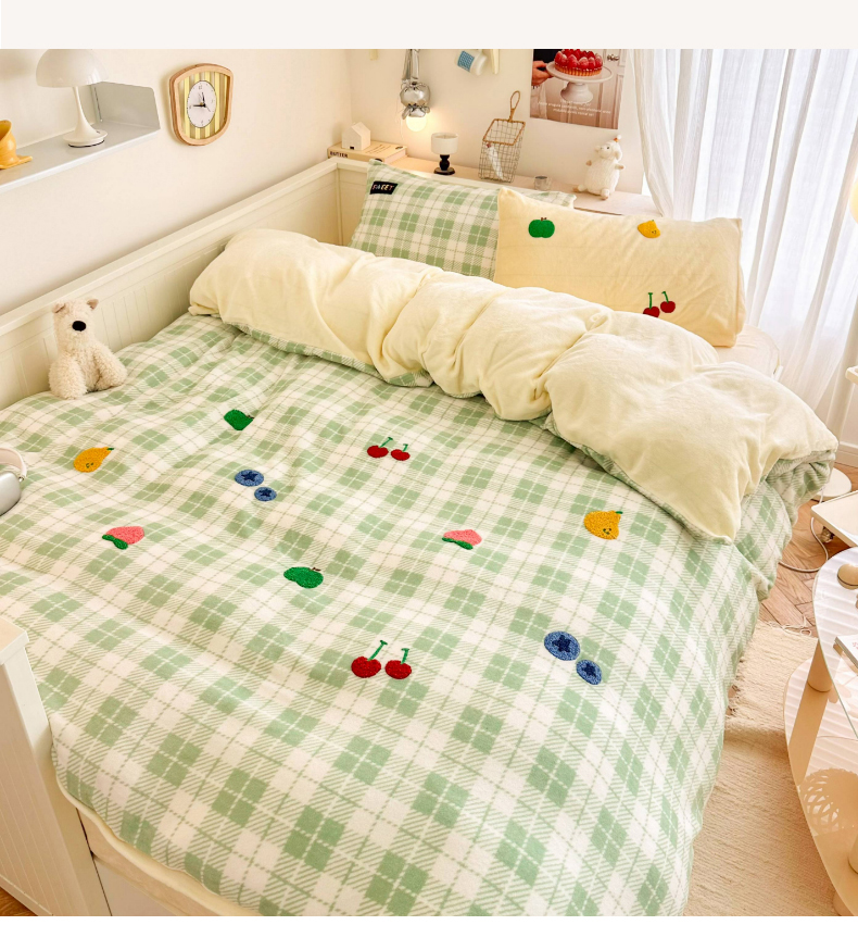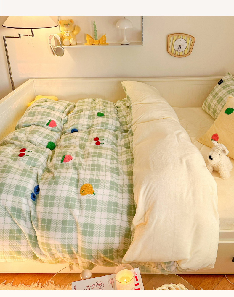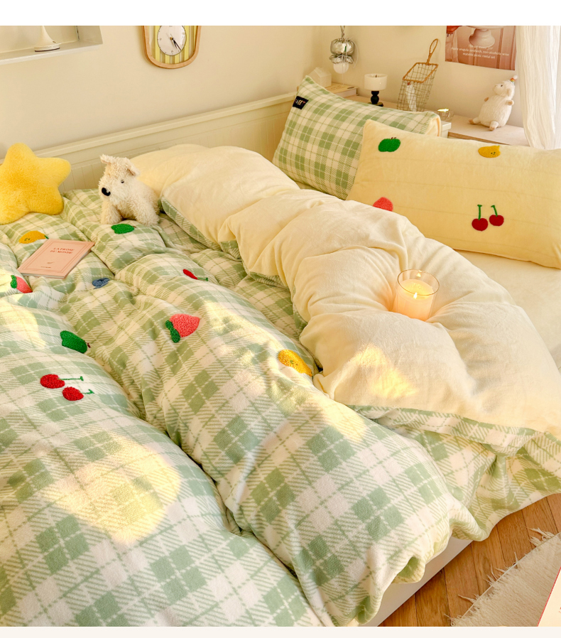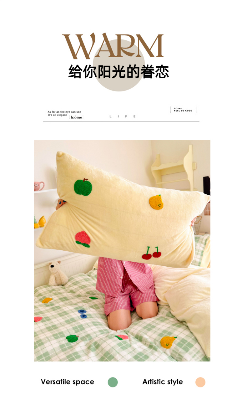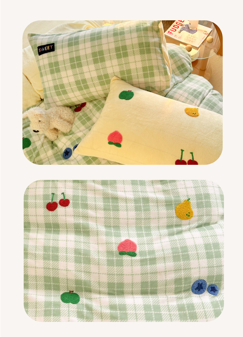 呗旺鹿 2024新款A类高克重散盘印花毛巾绣牛奶绒四件套 水果世界