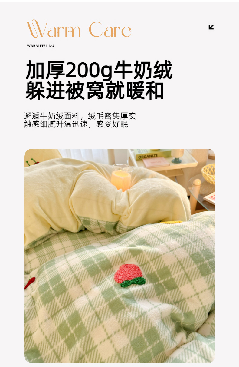 (总)呗旺鹿 2025新款卡通棉+绒牛奶绒棉绒四件套,心意满满,快乐魔法,闹钟麦田
