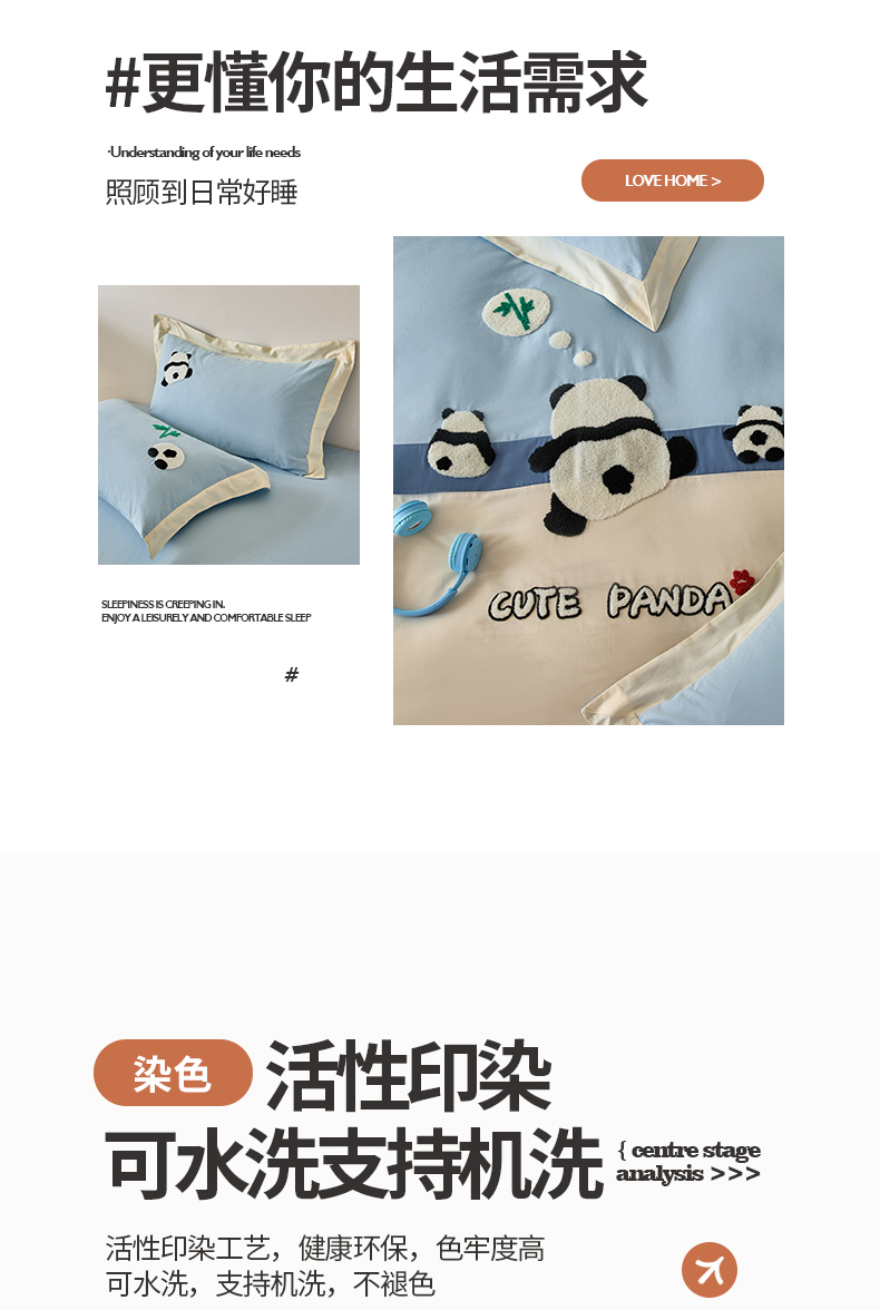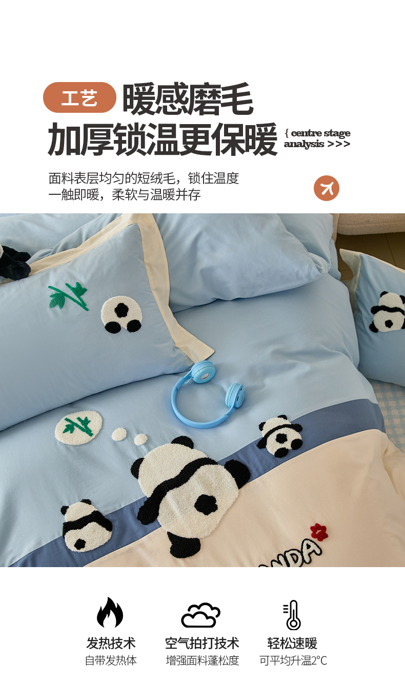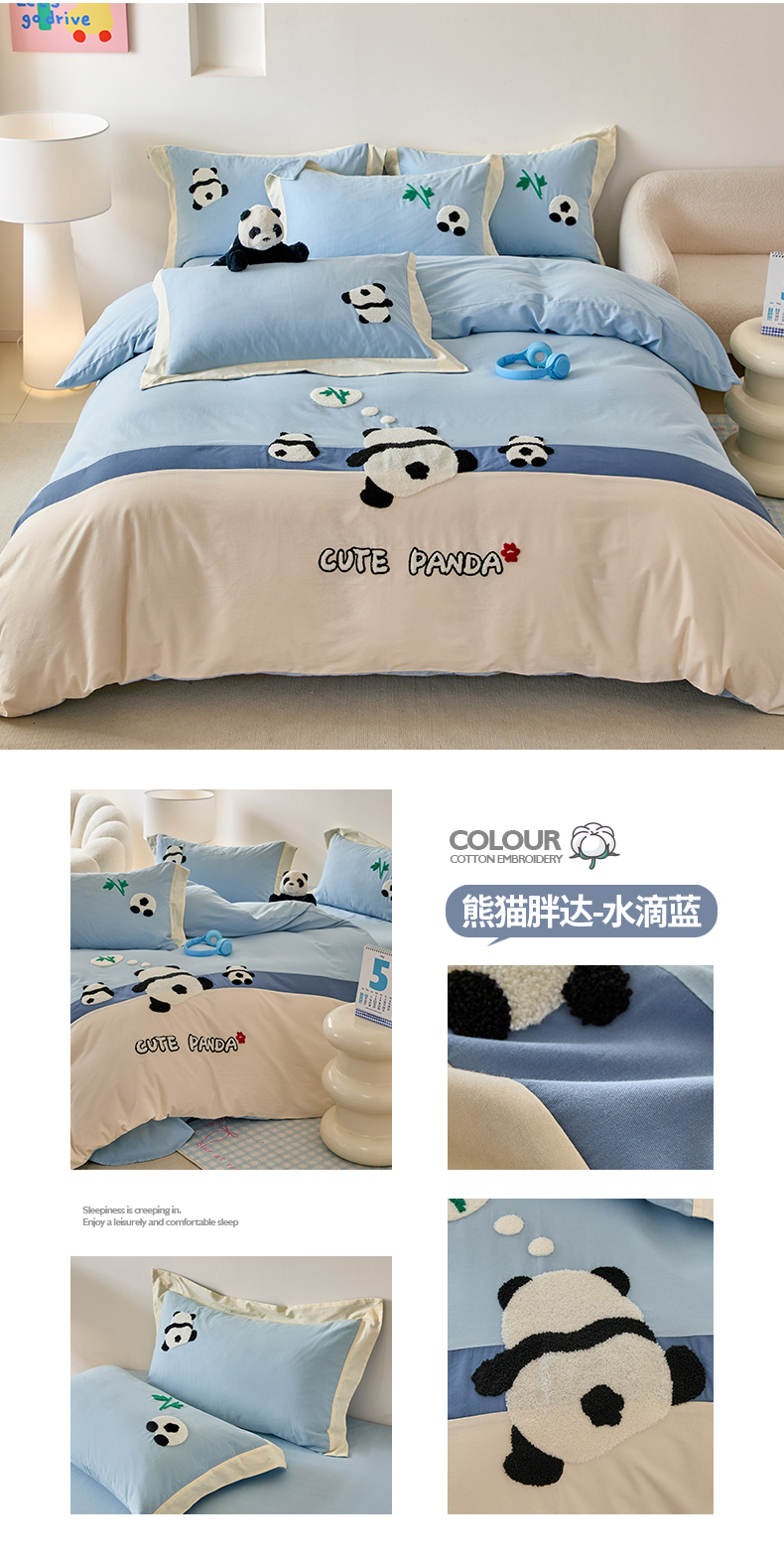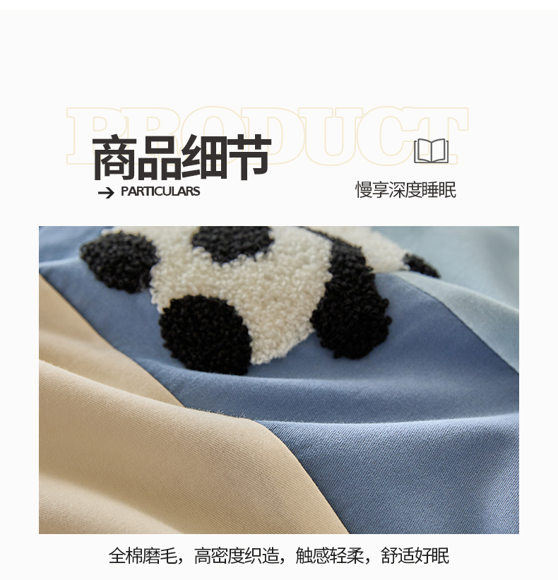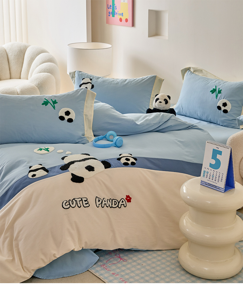 商品名称:典曼家纺 2024新款【熊猫胖达】磨毛毛巾绣四件套 熊猫胖达-水滴蓝