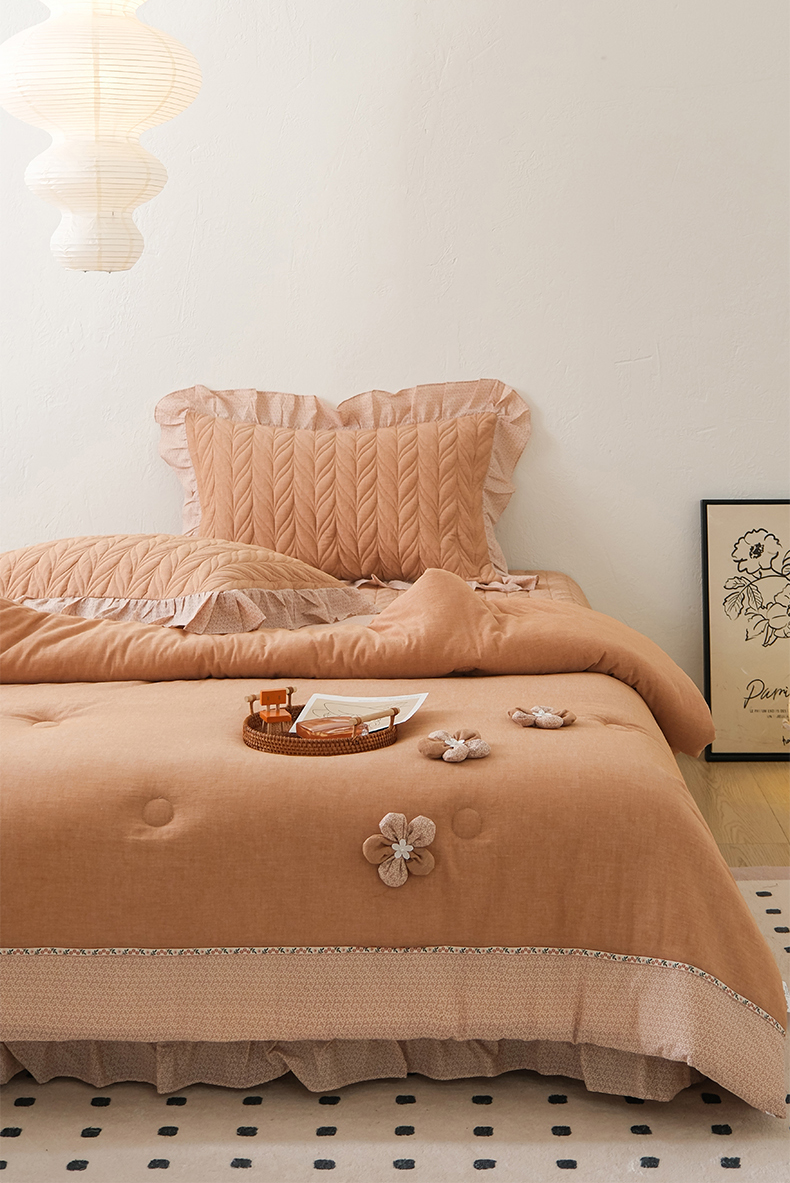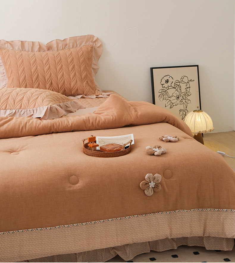 (总)上喜 2025新款简约棉麻床盖夏被夏凉被空调被四件套,粉色,灰色,咖色,麻本色