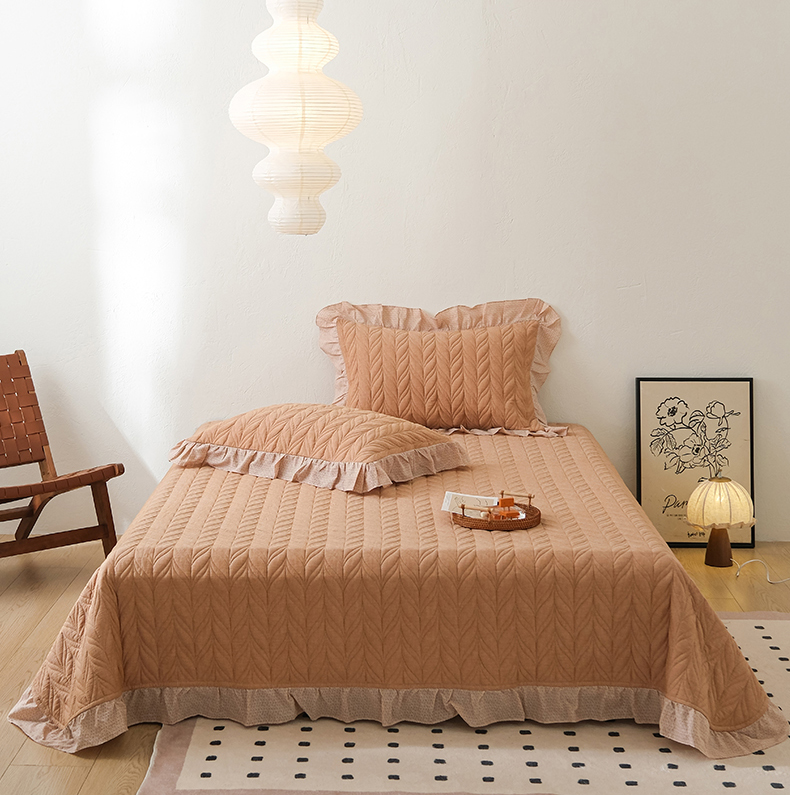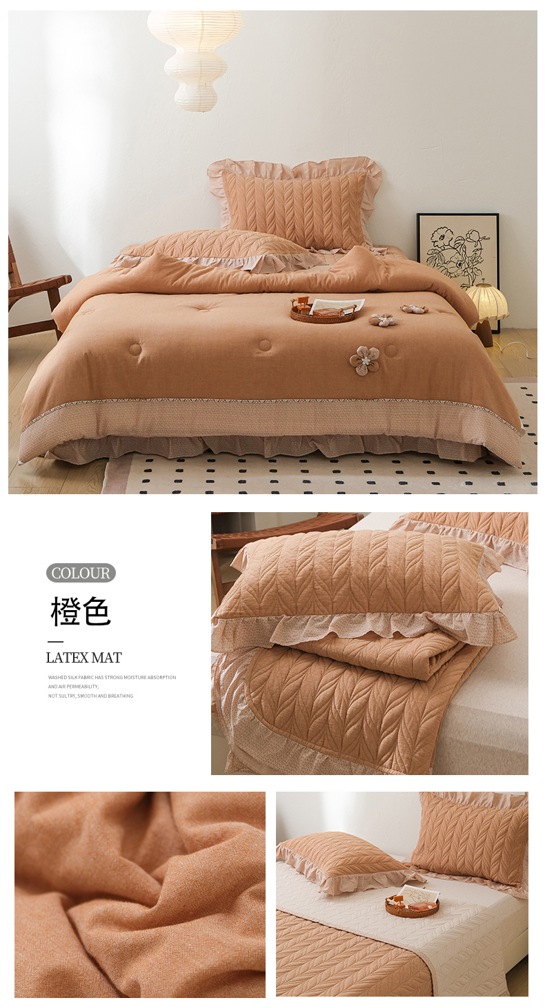 (总)上喜2025新款韩国全棉砂洗床盖系列,粉色,黄色,灰色,绿色,紫色