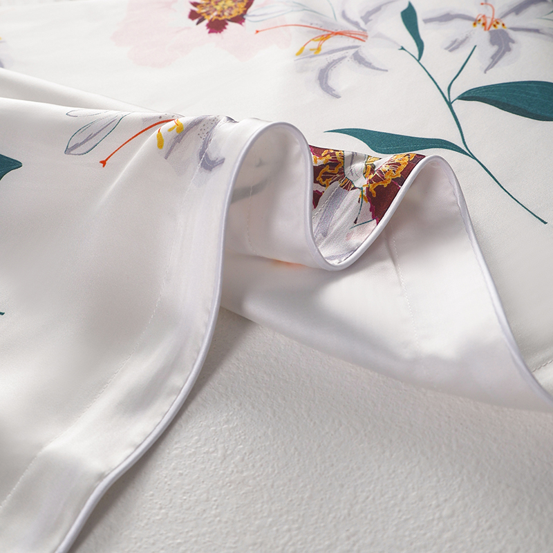 商品名称:2024新款真丝天丝数码印花枕套 百合花