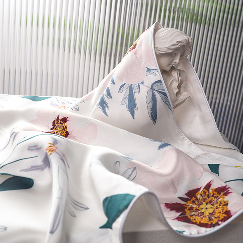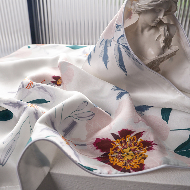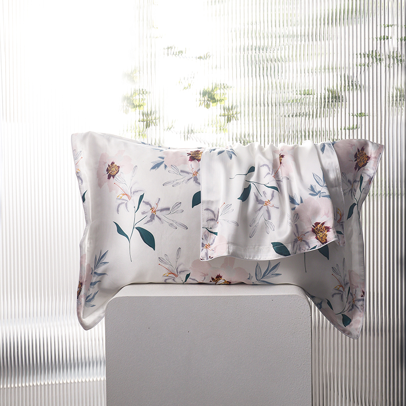 2024新款真丝天丝数码印花枕套 百合花
