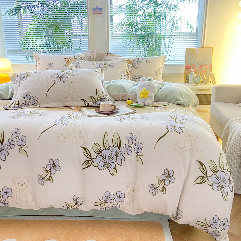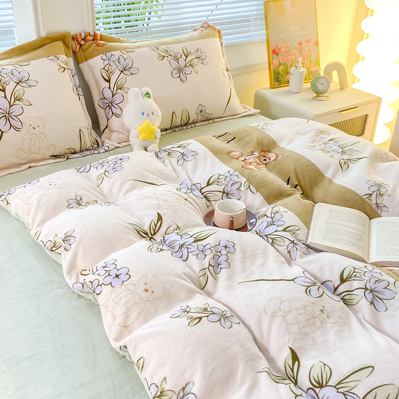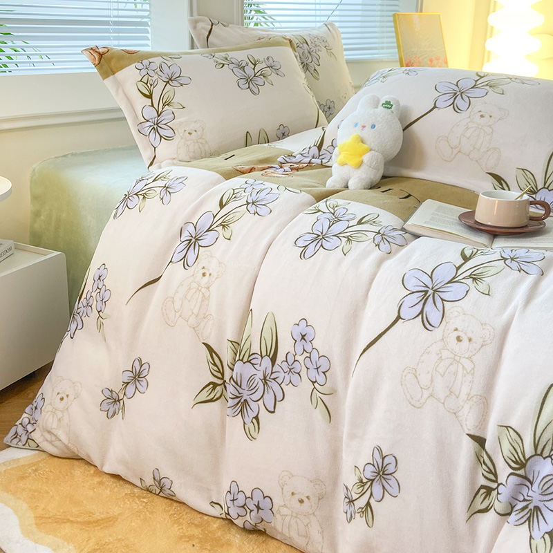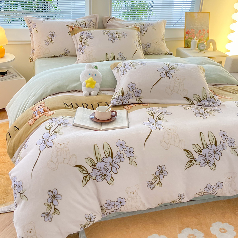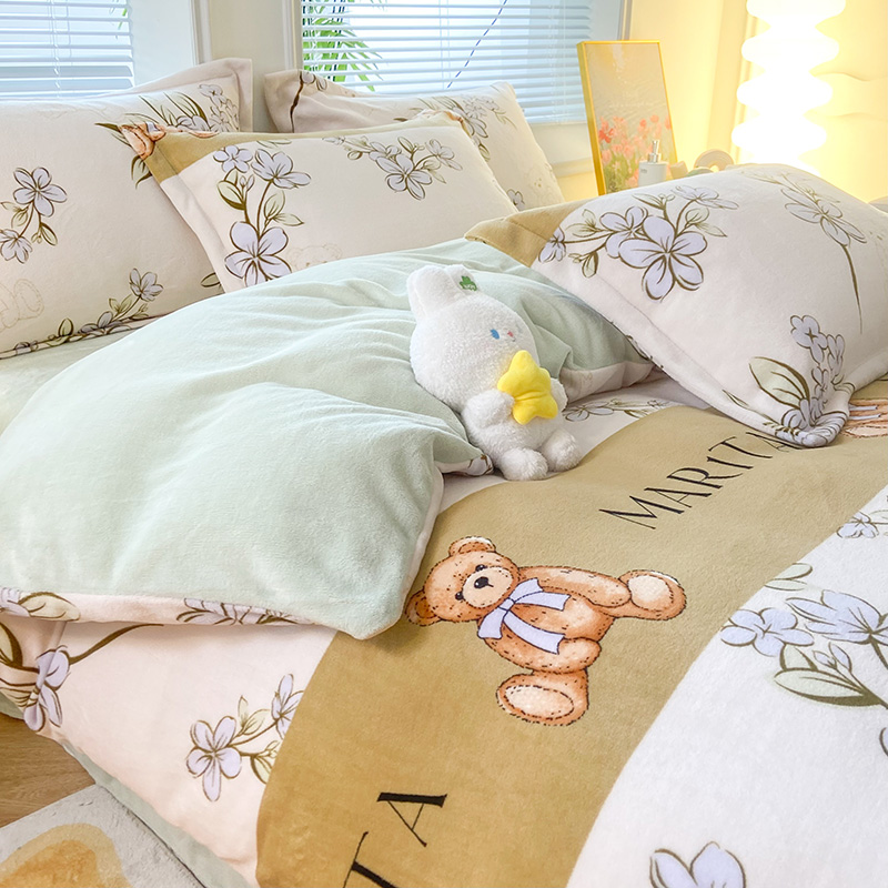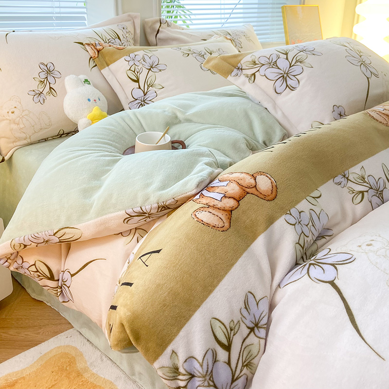 商品名称:枋梢家纺 2024新款加厚印花牛奶绒保暖四件套 花语小熊