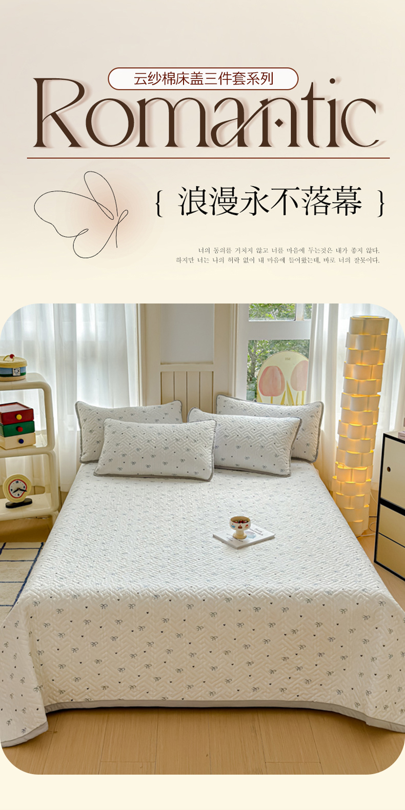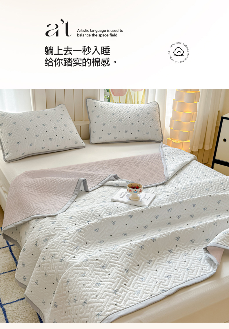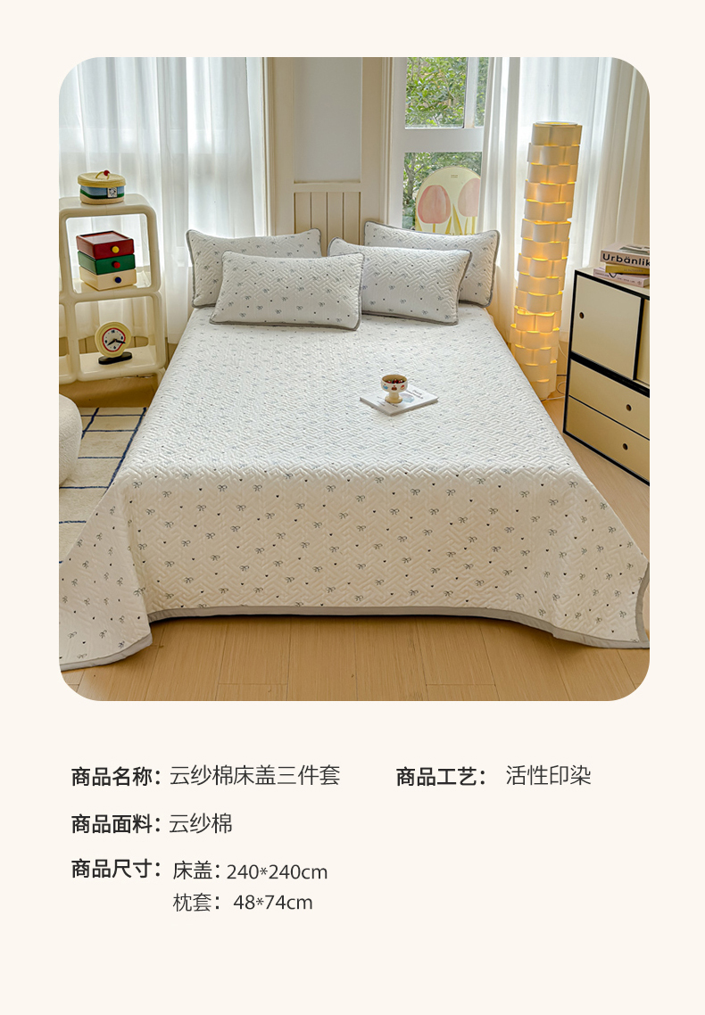 商品名称:芯元素 2024新款云纱棉床盖三件套 甜心兰