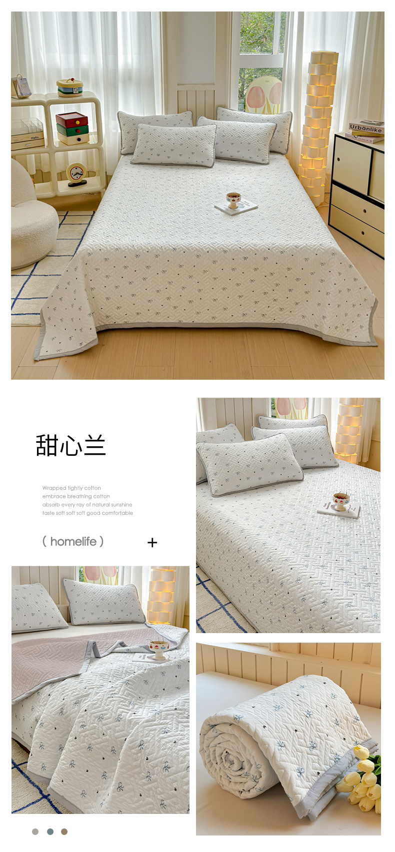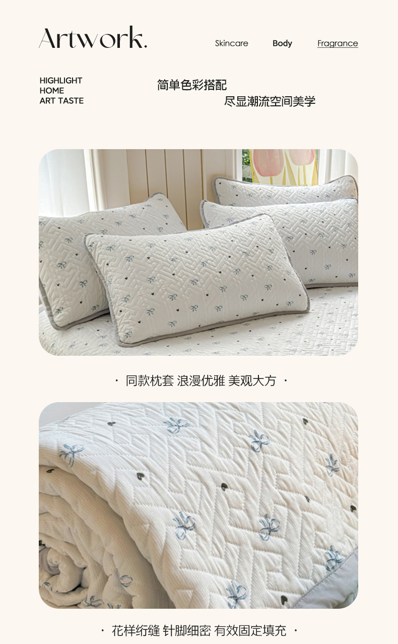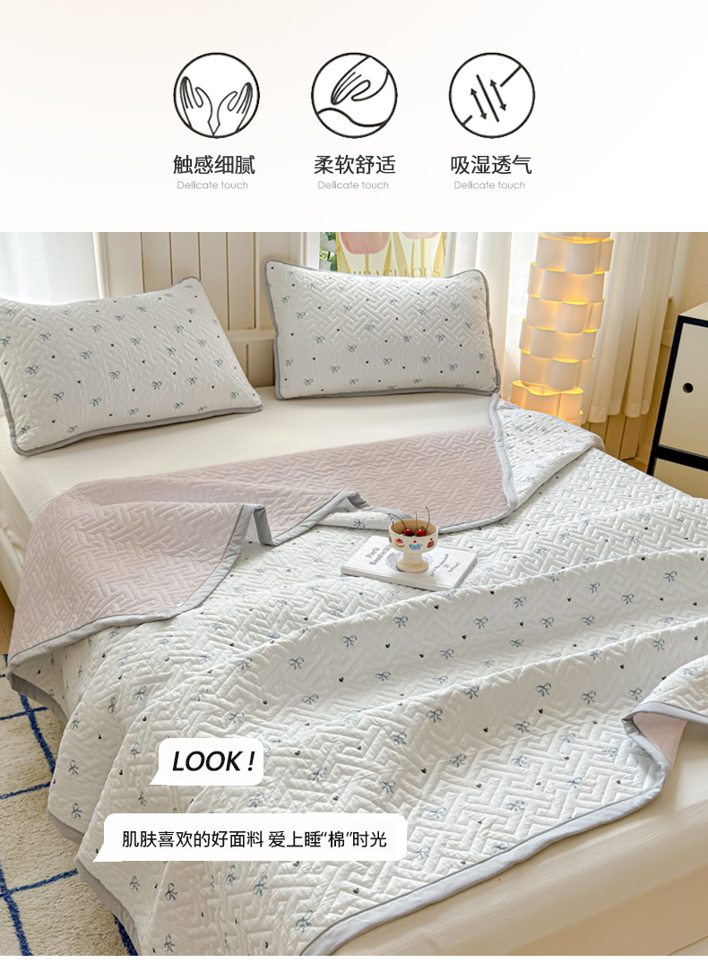 (总)芯元素 2024新款云纱棉床盖三件套,暗香,海盐蓝,花海,瑾年,青草绿,绅士咖,甜心兰,樱花粉