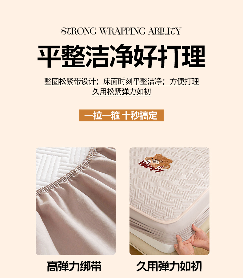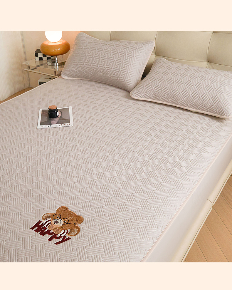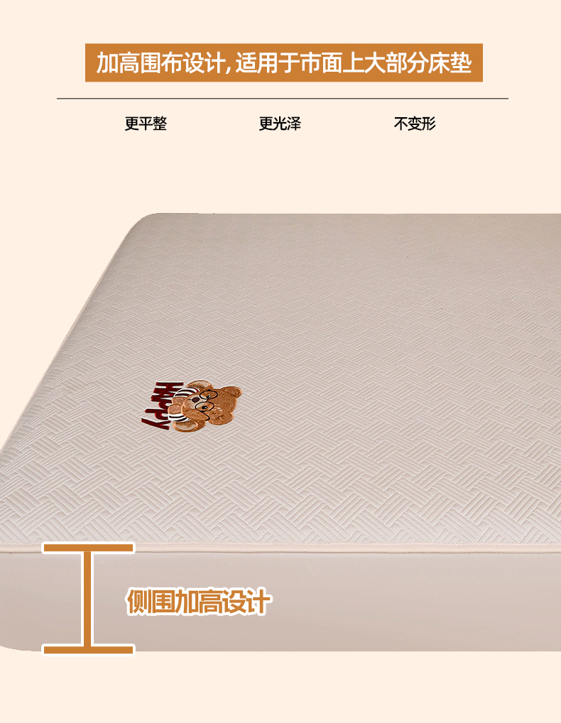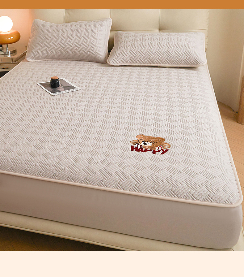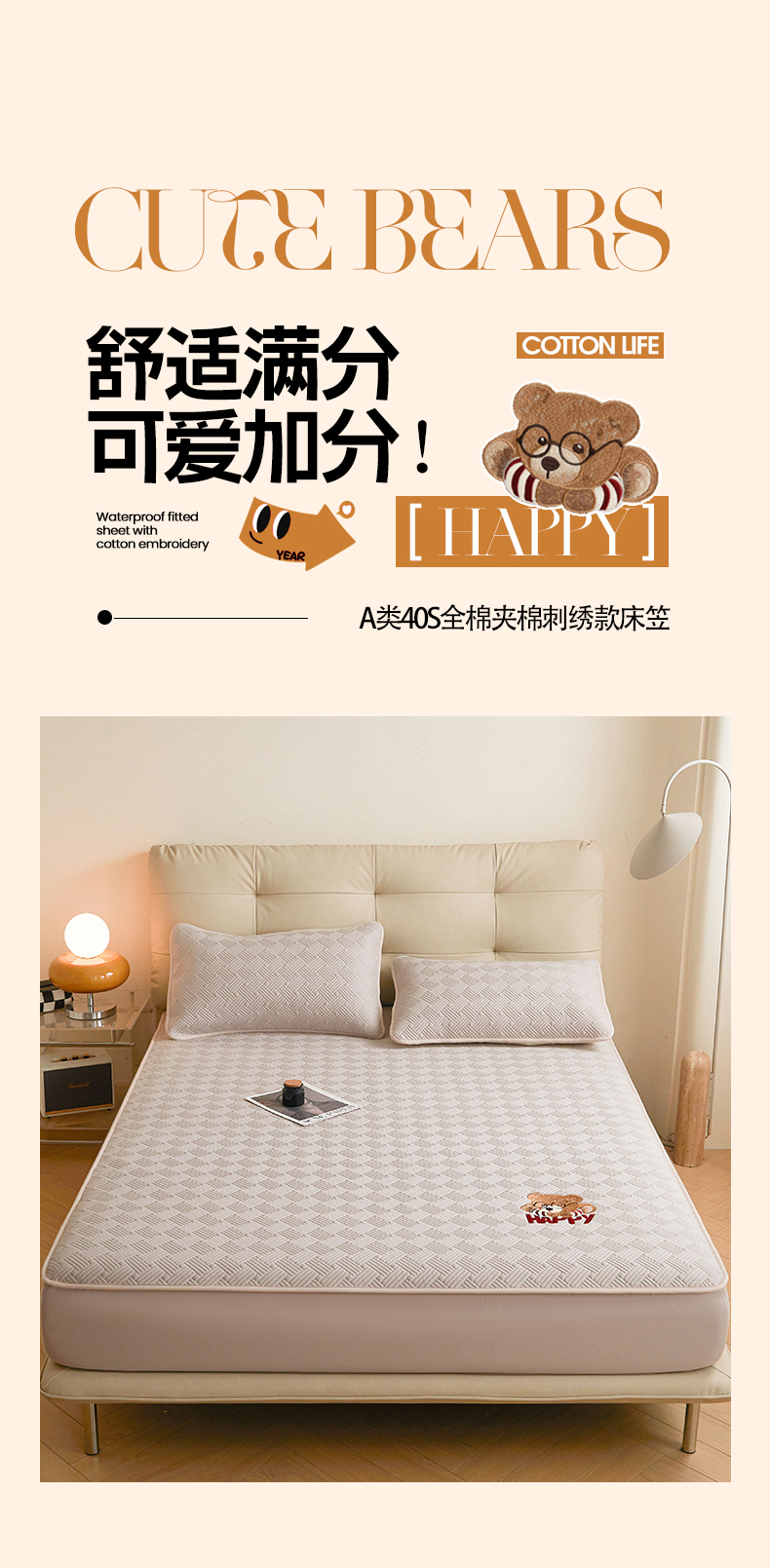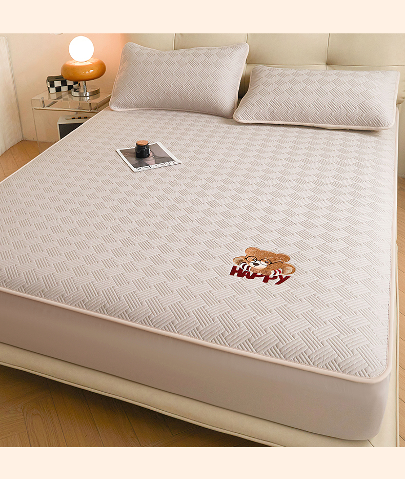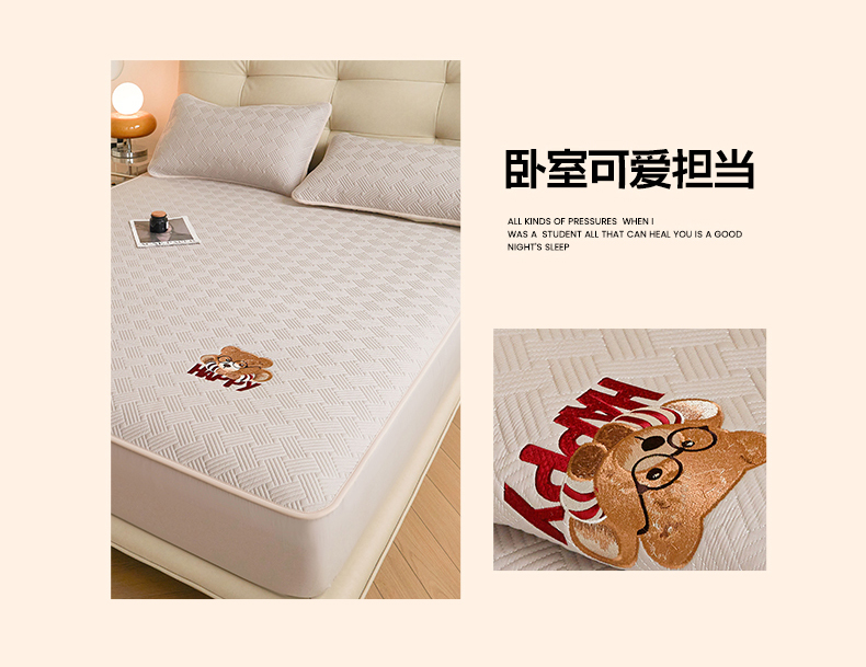 暖季家纺 2025新款40支长绒棉刺绣款全棉夹棉床笠支持定制 博士小熊-时尚灰