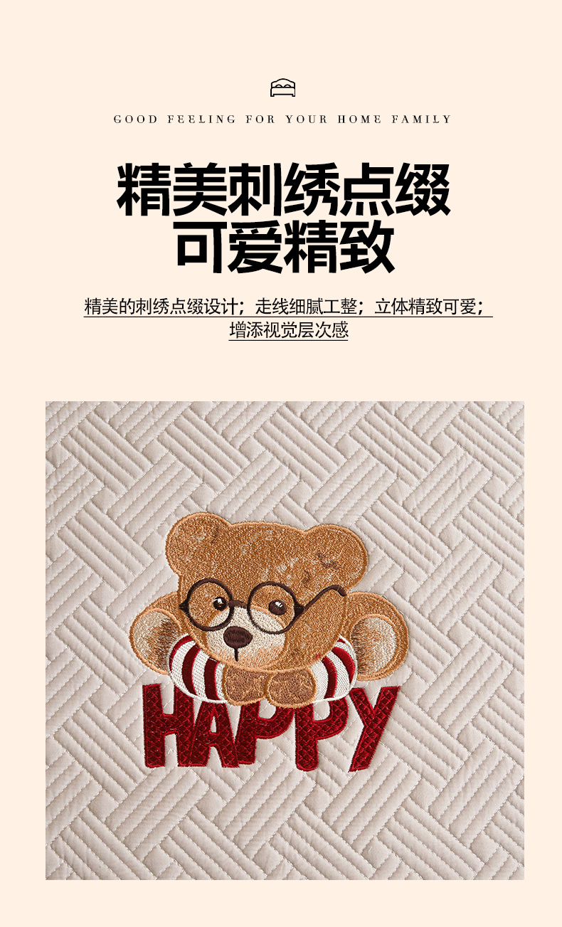 商品名称:暖季家纺 2025新款40支长绒棉刺绣款全棉夹棉床笠支持定制 博士小熊-时尚灰