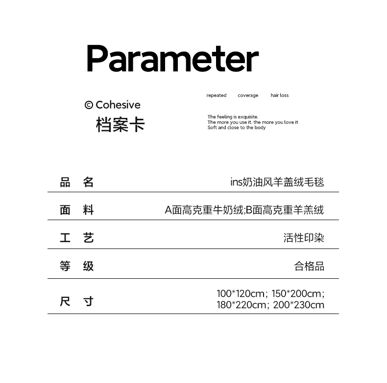 [{"sp_id":11,"sp_name":"\u989c\u8272\u5206\u7c7b","sp_format":2,"sp_list":[{"sp_value_id":651,"sp_value_name":"\u5976\u9ec4-\u7f8a\u7f94\u7ed2\u6bef","sp_value_image":{"id":999,"path":"https:\/\/img3.91jf.com\/ghelp\/2024\/20241106\/29433efd-05b8-406d-b725-a106140b2d3120241106123828909.jpg_30_30.jpg"},"sp_value_video":{"id":0,"img":"","path":"","time":0,"download_num":0,"play_num":0},"price":"26.00","storage":1499,"weight":"1.000","is_check_weight":0,"plus_price":"","sp_sort":3}]},{"sp_id":12,"sp_name":"\u5c3a\u5bf8","sp_format":1,"sp_list":[{"sp_value_id":75,"sp_value_name":"100x120cm","sp_value_image":{"id":0,"path":""},"sp_value_video":{"id":0,"img":"","path":"","time":0,"download_num":0,"play_num":0},"price":"26.00","storage":500,"weight":"1.000","is_check_weight":0,"plus_price":"","sp_sort":5},{"sp_value_id":76,"sp_value_name":"150x200cm","sp_value_image":{"id":0,"path":""},"sp_value_video":{"id":0,"img":"","path":"","time":0,"download_num":0,"play_num":0},"price":"43.00","storage":500,"weight":"1.500","is_check_weight":0,"plus_price":"","sp_sort":6},{"sp_value_id":77,"sp_value_name":"200x230cm","sp_value_image":{"id":0,"path":""},"sp_value_video":{"id":0,"img":"","path":"","time":0,"download_num":0,"play_num":0},"price":"50.00","storage":499,"weight":"1.600","is_check_weight":0,"plus_price":"","sp_sort":7}]}]
