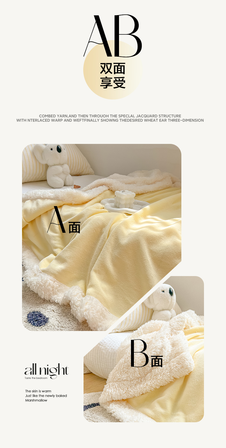 盼季家纺 2024新款ins风博主风羊羔绒毛毯加厚保暖牛奶绒毯子单人办公午睡毯-风格一 奶黄-羊羔绒毯