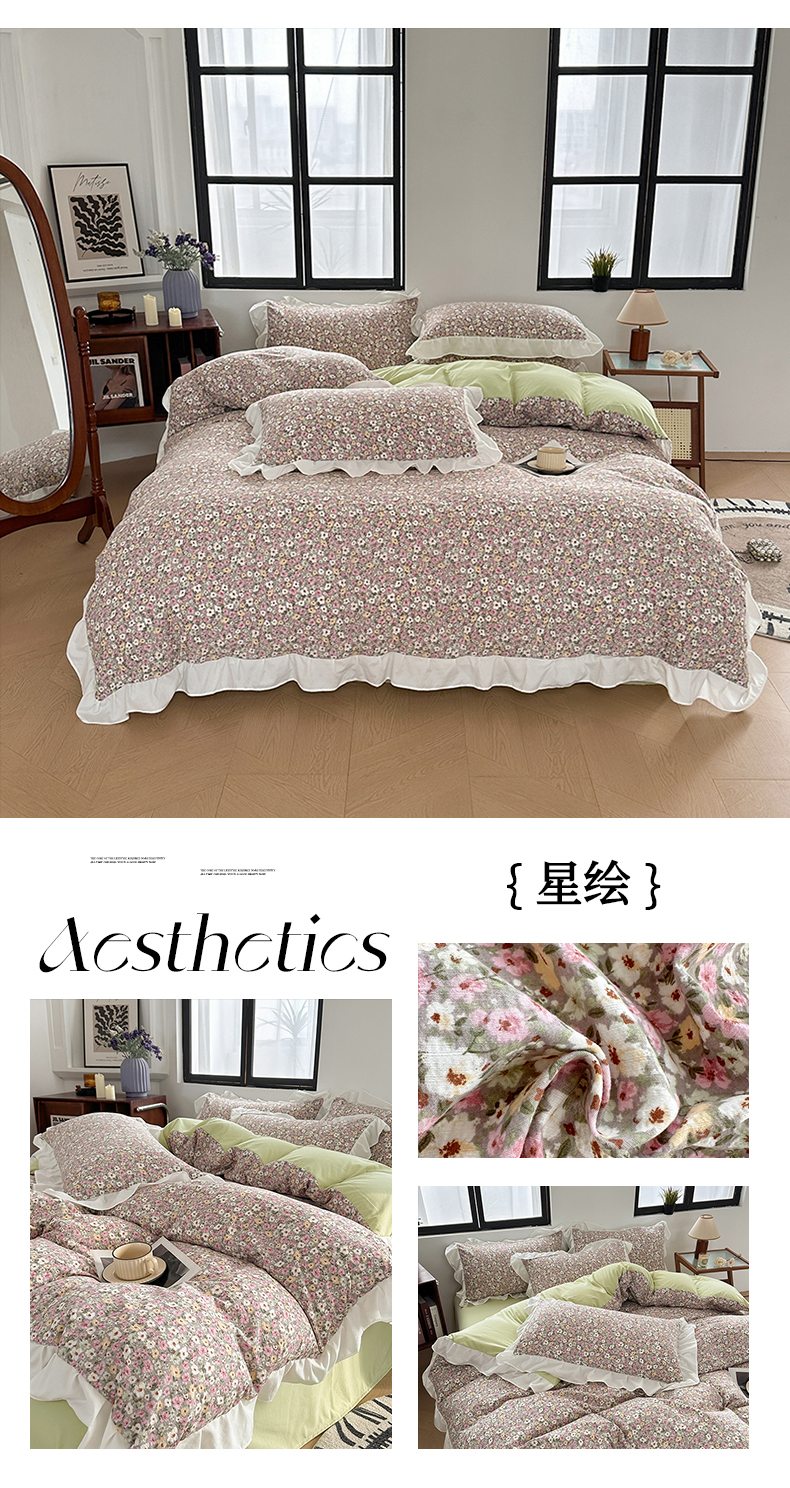 当前位置: 91家纺网 > 商品网购 > 床品套件 > 四件套 > 水洗棉四件套 > 希丞家居 2024新款小清新水洗棉花边四件套 星绘