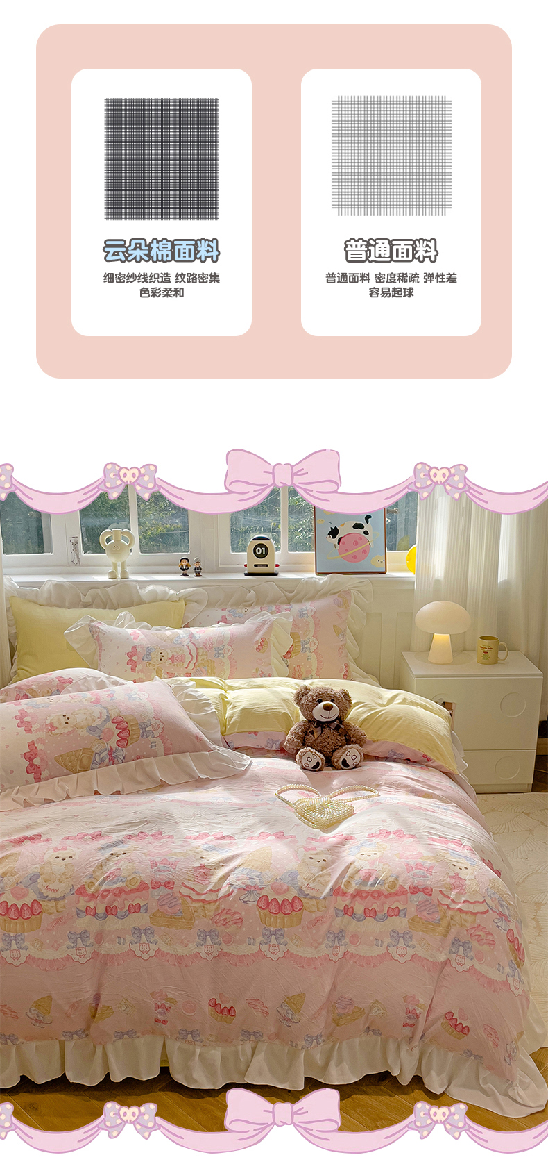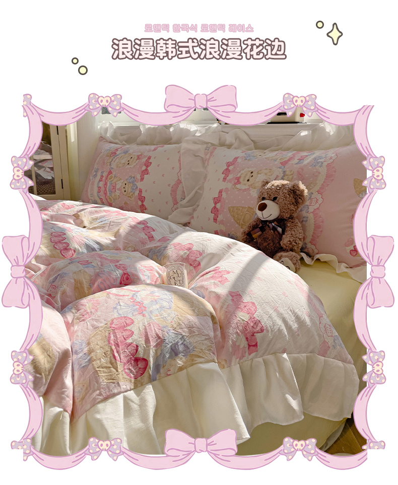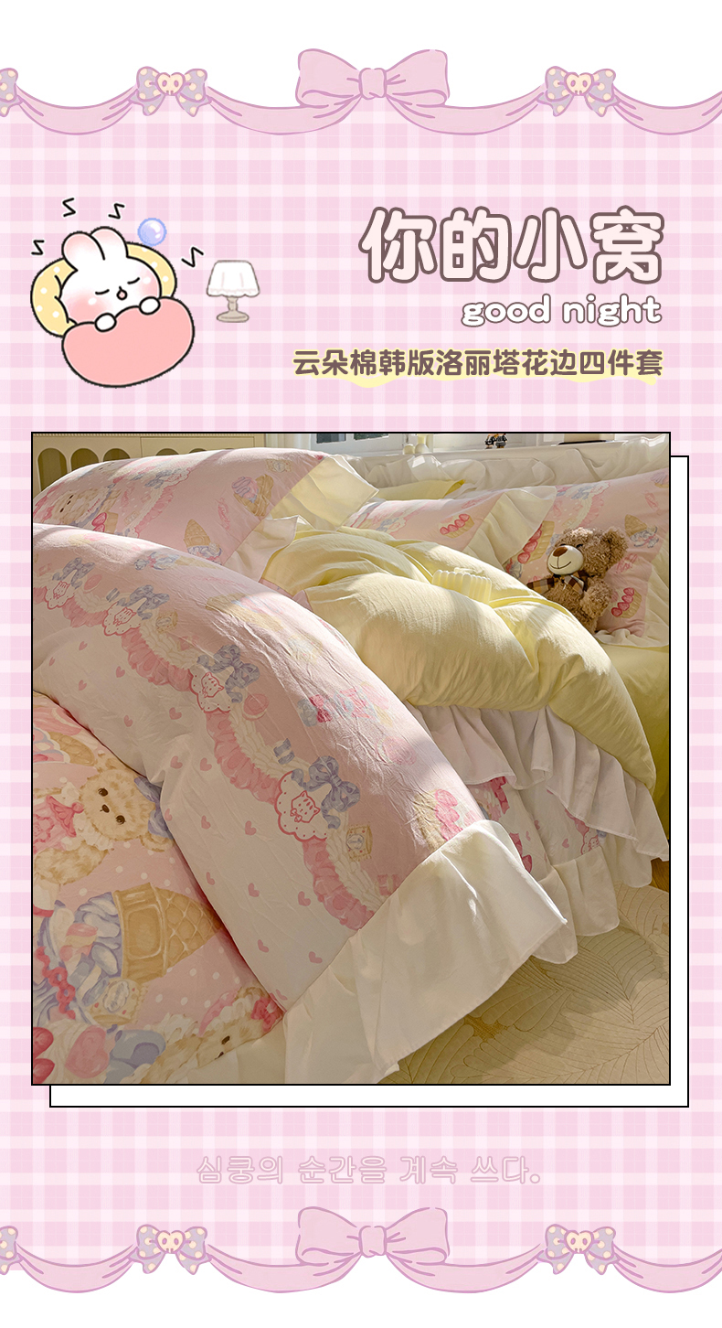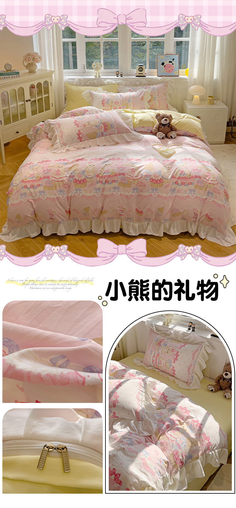 当前位置: 91家纺网 > 商品网购 > 床品套件 > 四件套 > 其它四件套 > 罗亿家纺 2025新款洛丽塔云朵棉花边四件套场景一(提供买家秀) 小熊的礼物