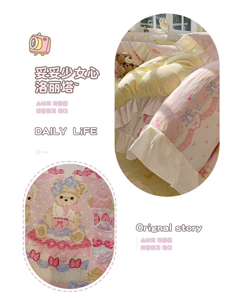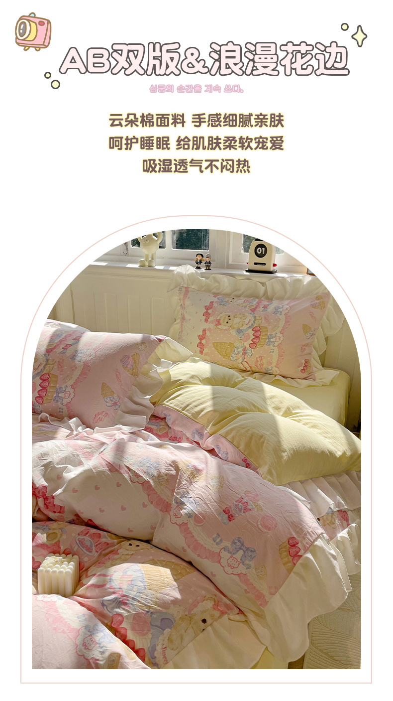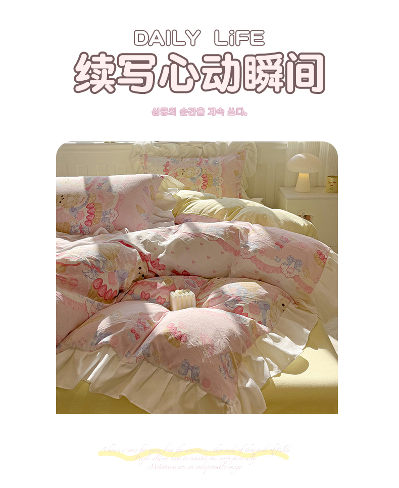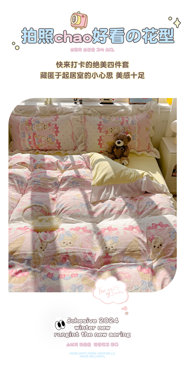 当前位置: 91家纺网 > 商品网购 > 床品套件 > 四件套 > 其它四件套 > 罗亿家纺 2025新款洛丽塔云朵棉花边四件套场景一(提供买家秀) 小熊的礼物