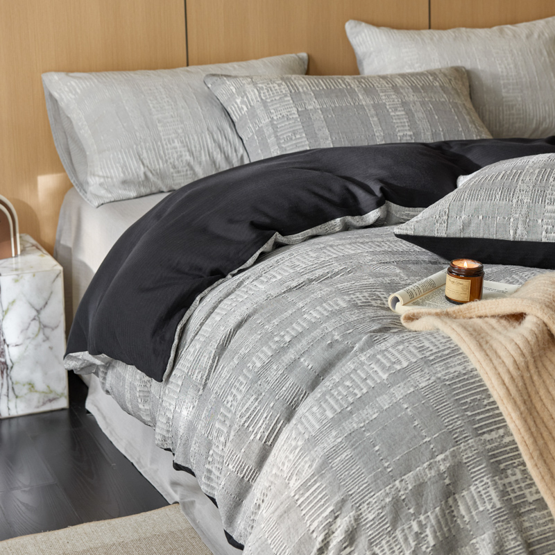 简家居 2024新款全棉色织提花四件套--回响 回响-黑色