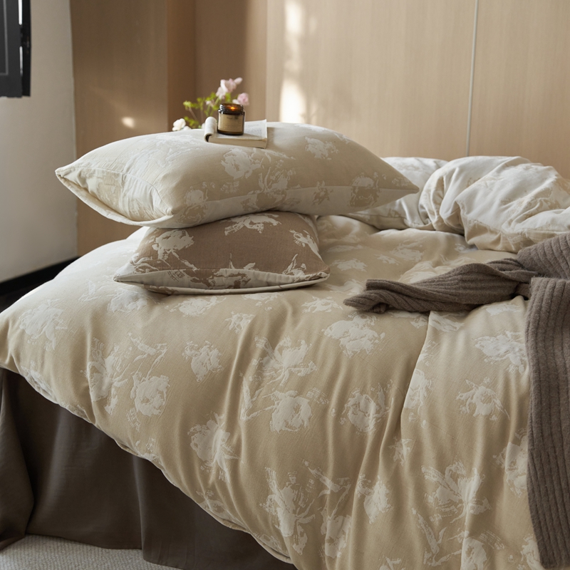 (总)简家居2025新款40支全棉色织空气棉四件套-鎏金喜韵,鎏金喜韵