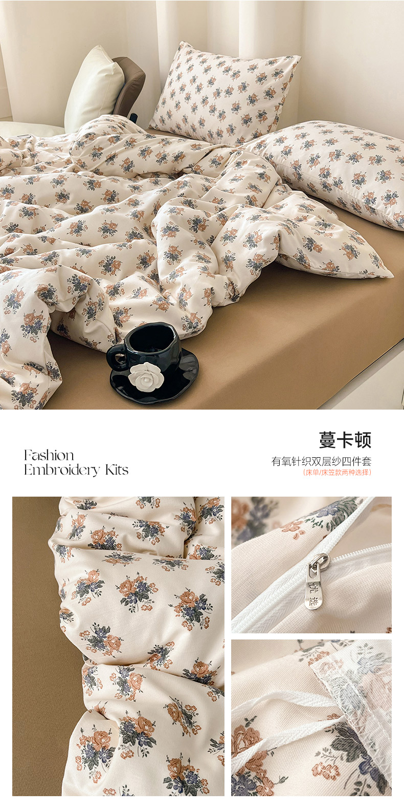 当前位置: 91家纺网 > 商品网购 > 床品套件 > 四件套 > 其它四件套 > 暖芯优选 2025新款针织棉双层纱四件套小碎花被套床单床笠款学生三件套新款直播热款-床图-系列二 蔓卡顿