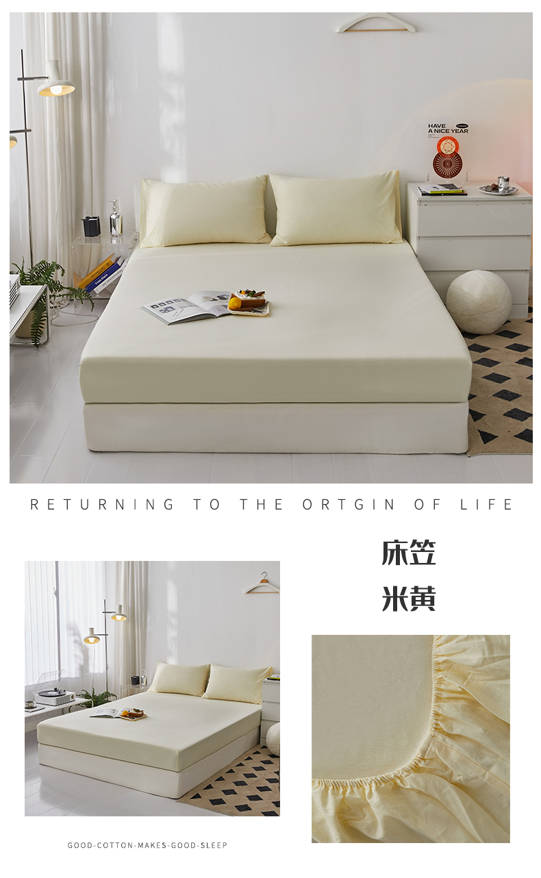 商品名称:雅居纺家纺 2025新款全棉素色水洗棉单床笠 米黄