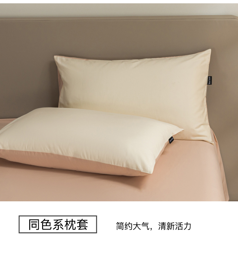商品名称:卧趣家纺 2025新品全棉A类长绒棉纯色双拼四件套 奶昔白+白桃粉