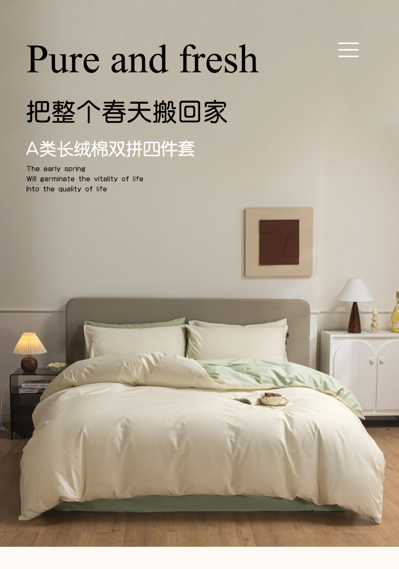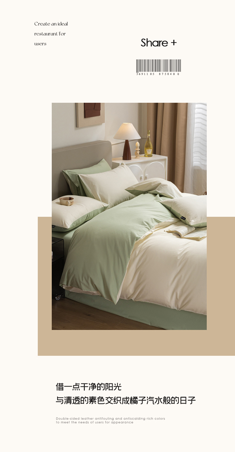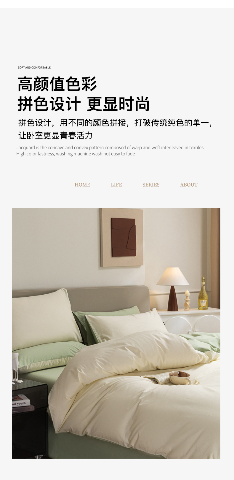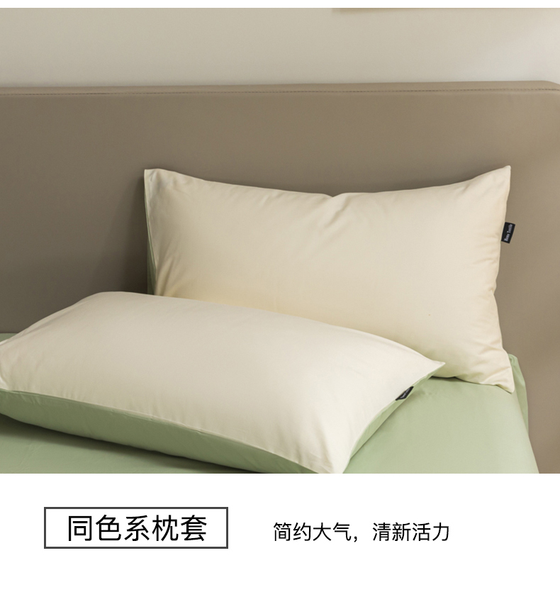 商品名称:卧趣家纺 2025新品全棉A类长绒棉纯色双拼四件套 奶昔白+清风绿