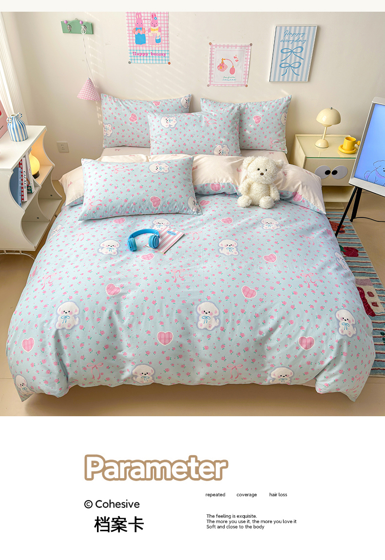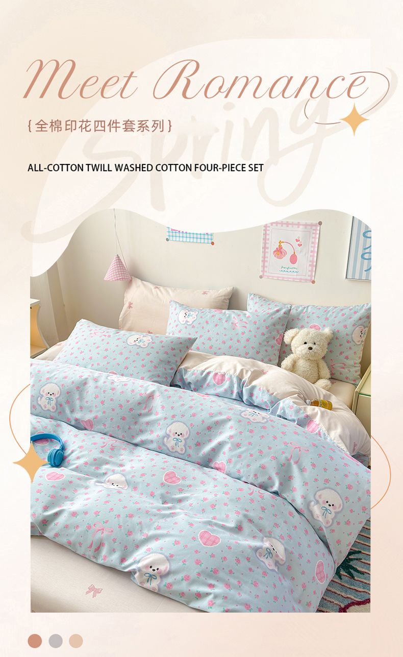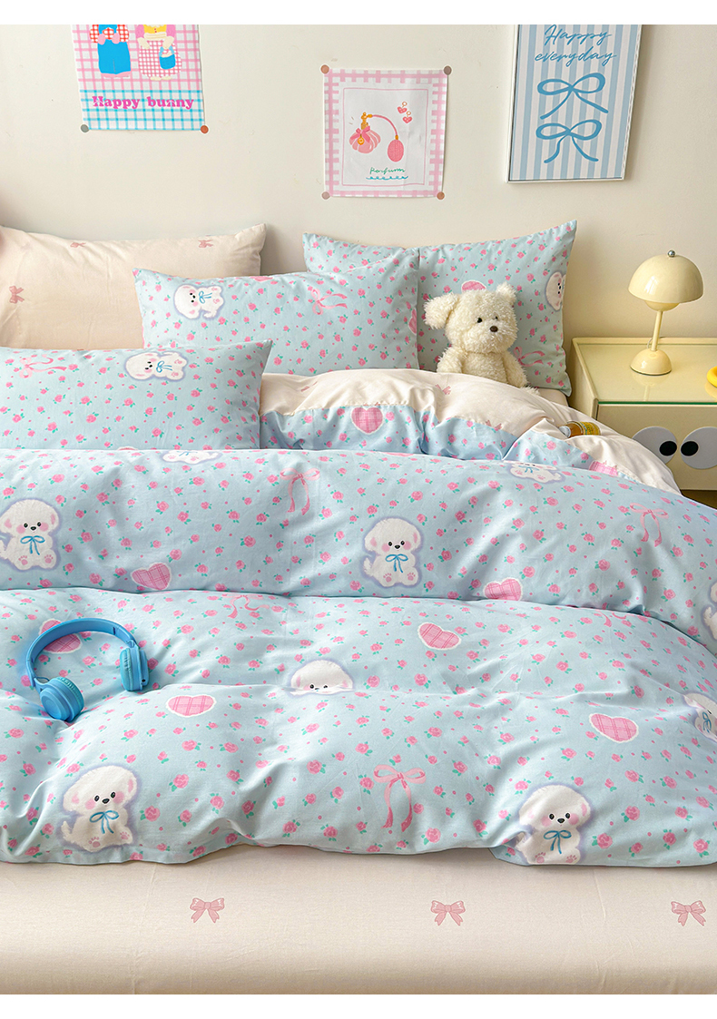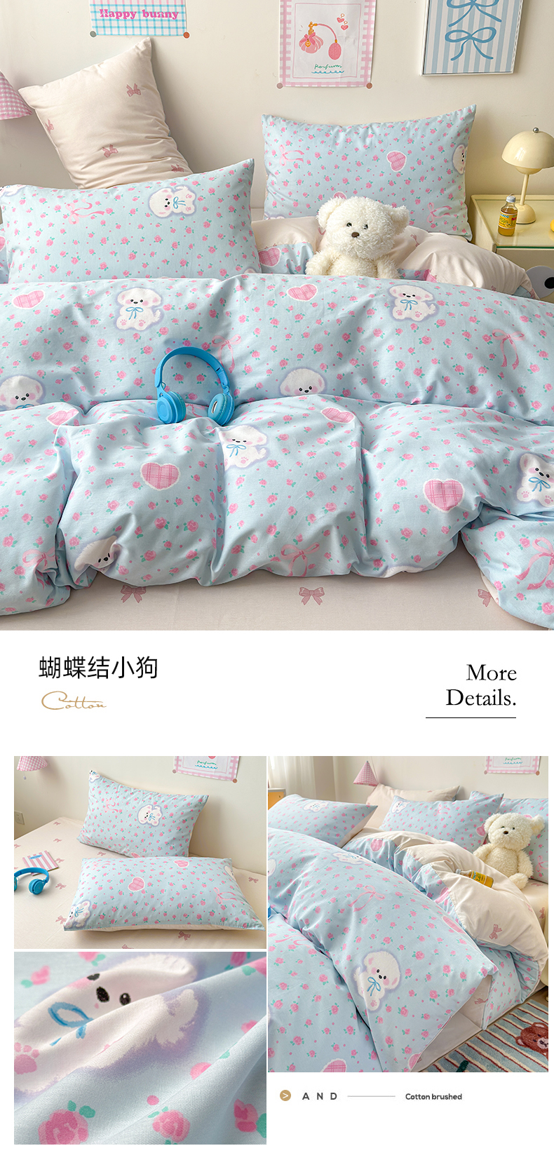 曼之夏 2025新款全棉印花四件套 蝴蝶结小狗