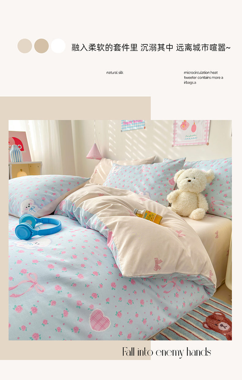 (总)曼之夏 2025新款原棉加厚磨毛印花四件套,比心,布鲁兔,春风十里,大都会,简兮,麦琪熊,麦语-灰,梦游记,眠时光,奇想,轻奢生活,塔维尔(米),甜心小熊,威斯丁,闲趣时光,意林(兰)